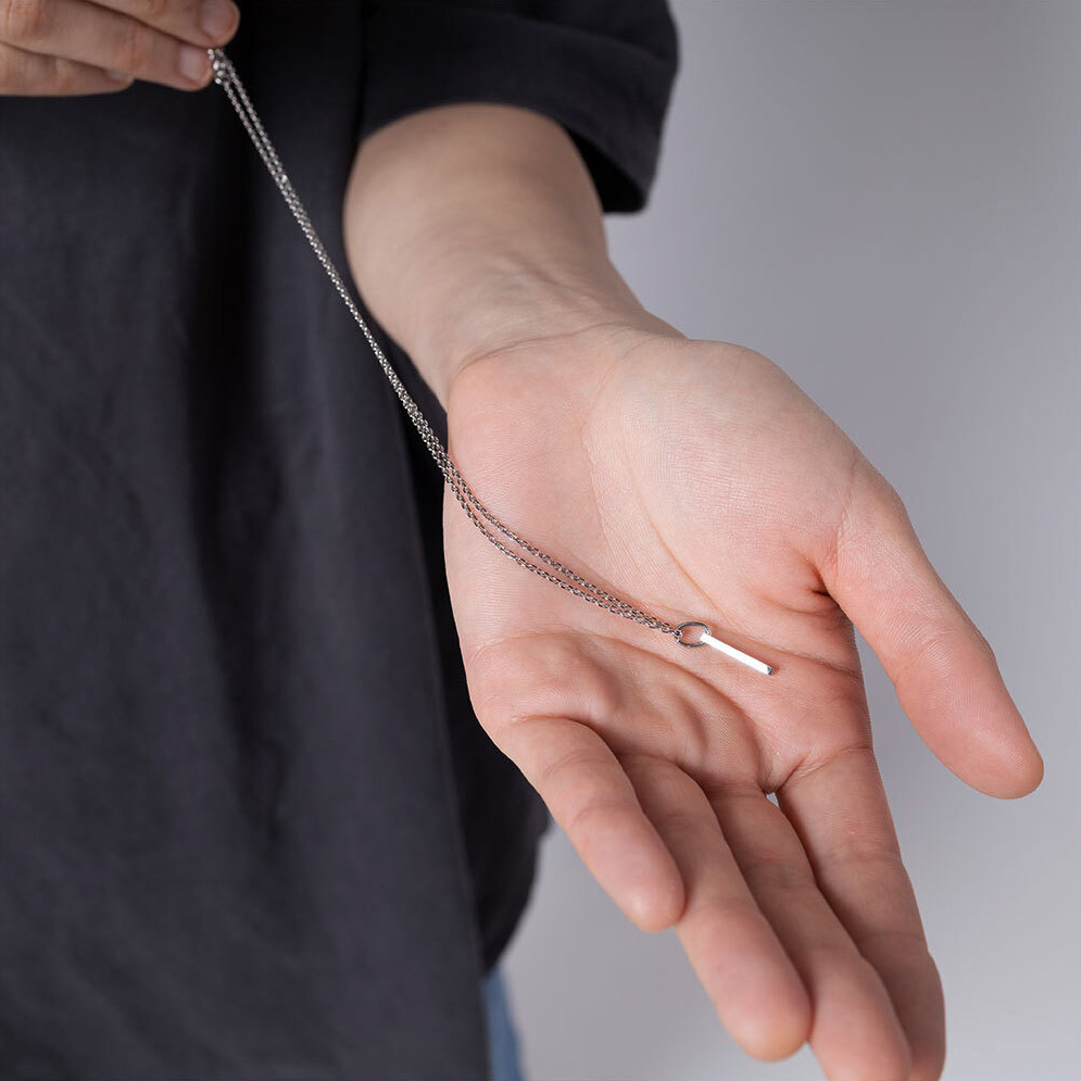 | サイズ | Sサイズ 全長約400mm (350mm + 50 mm) Lサイズ 全長約500mm (450mm + 50 mm) ペンダント 縦20mm 横2.3mm 厚み1.4mm ※縦サイズはバチカンを含む プレートのみ 15mm チェーン 幅約 1.3 mm |