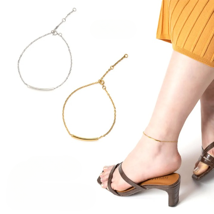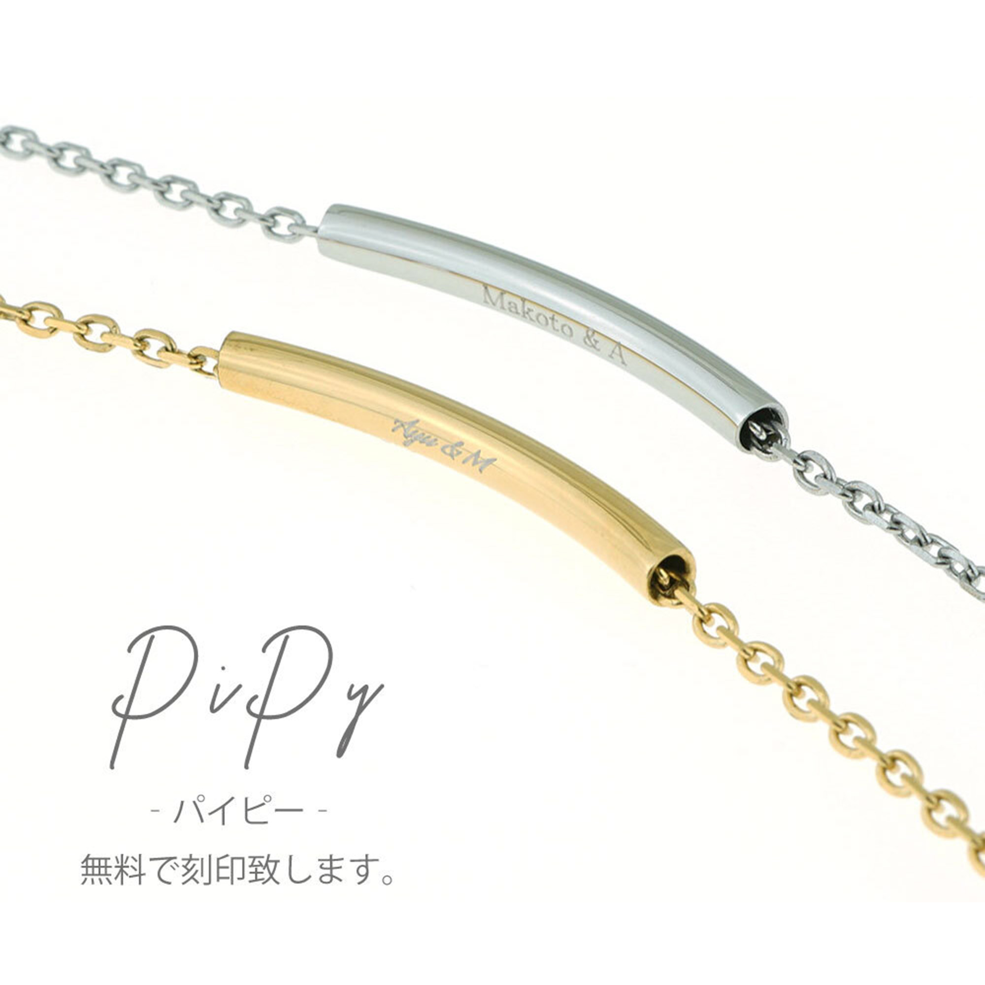 パイプモチーフのシンプルなアンクレット。いつも身に着けていられる、デイリーアクセサリーのパイピーシリーズです。お好きな言葉を、無料で刻印いたします。
