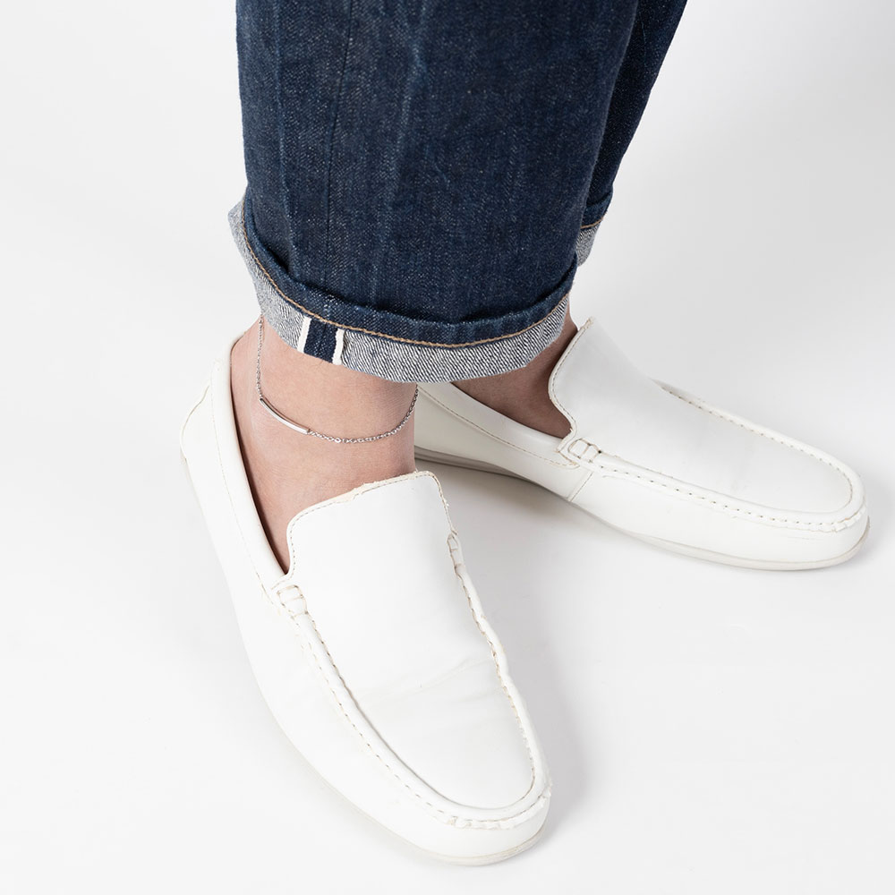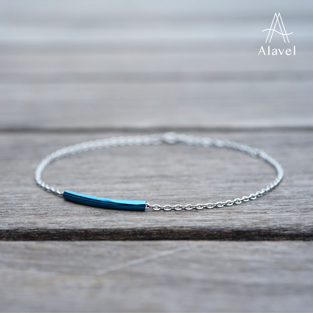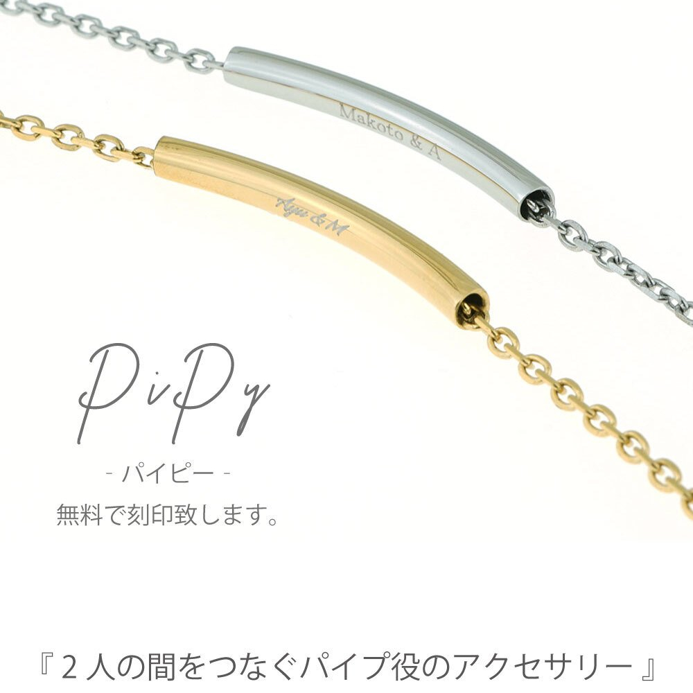 パイプモチーフのシンプルなアンクレット。いつも身に着けていられる、デイリーアクセサリーのパイピーシリーズです。お好きな言葉を、無料で刻印いたします。