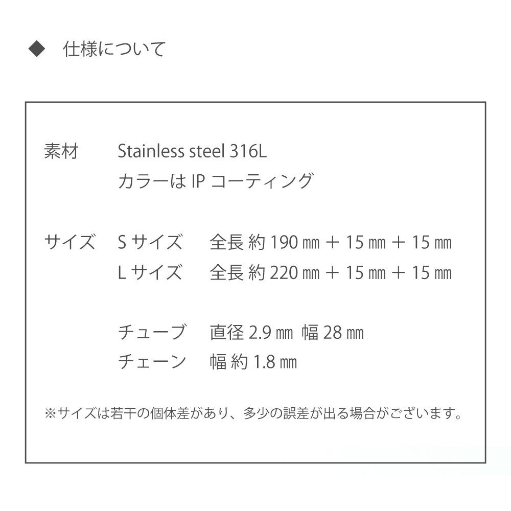| サイズ | Sサイズ 全長約190mm+15mm+15mm Lサイズ 全長約220mm+15mm+15mm チューブ 直径2.9mm 幅28mm チェーン 幅約1.8mm |