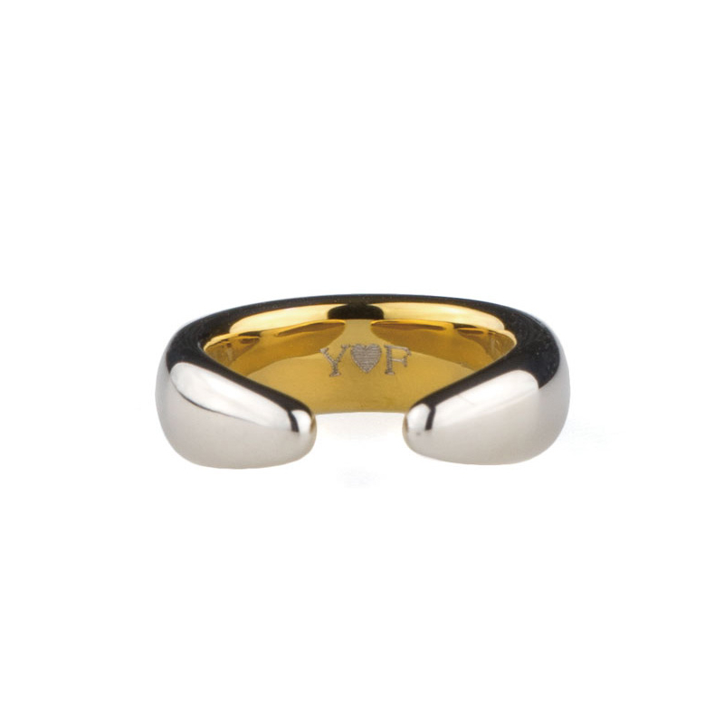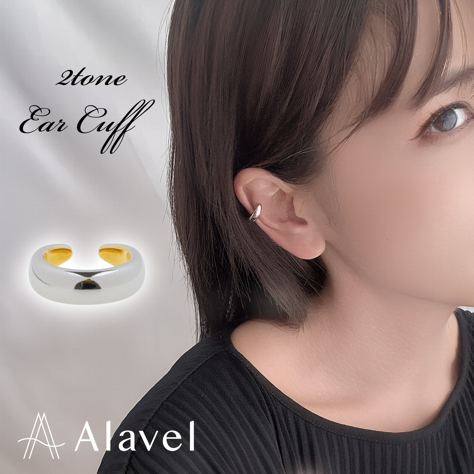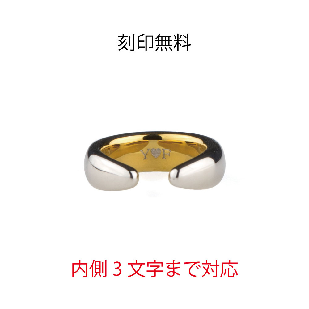表面が銀色、内側面が金色の2トーンカラーのシンプルイヤーカフ。チラリと見える内側のゴールドカラーが高級感を醸し出します。お好きな言葉を、無料で刻印いたします。