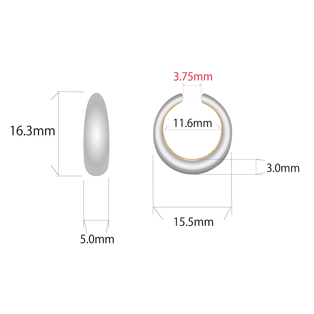 | サイズ | 縦16.3mm 横15.5mm 厚み5.0mm 開口部3.75mm |