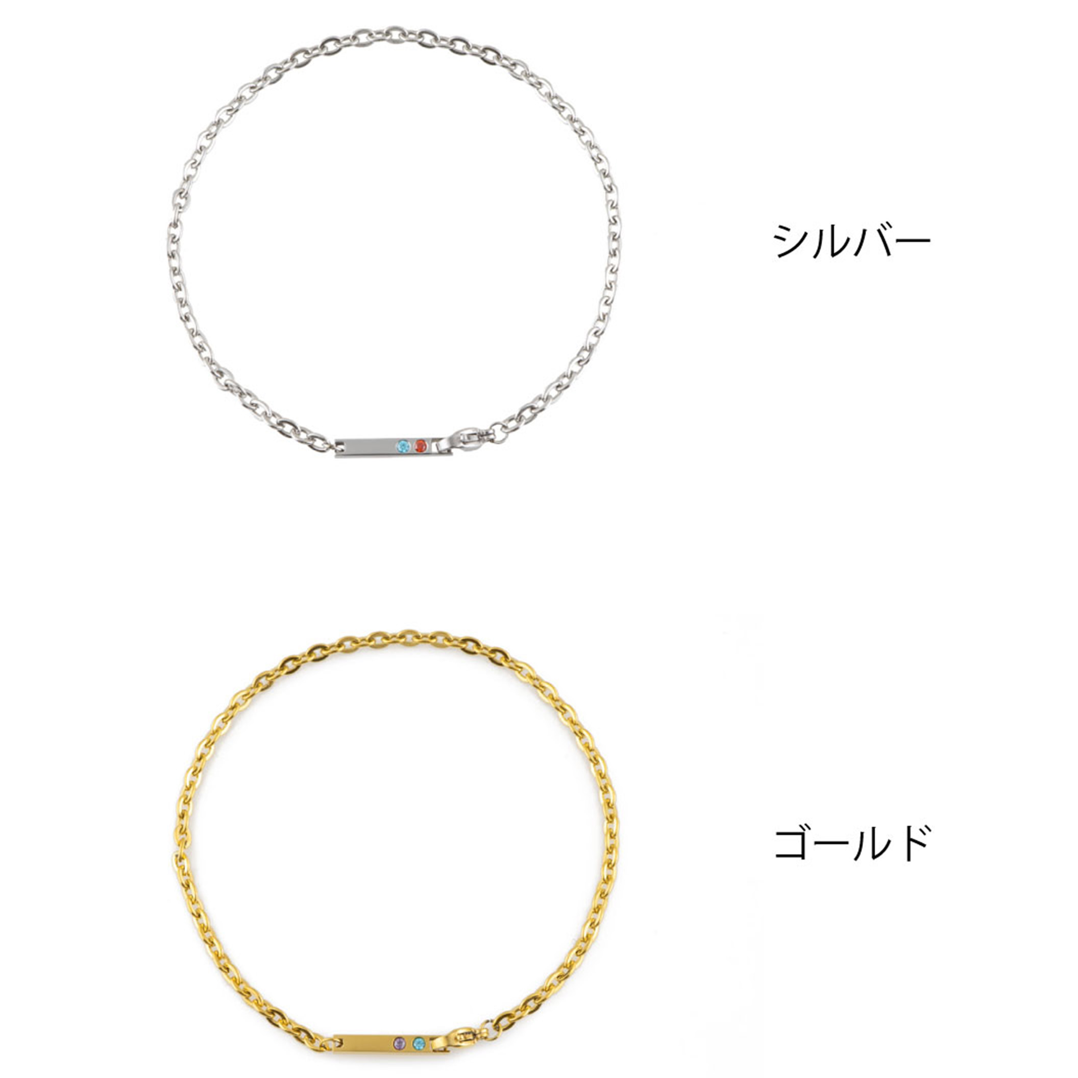 大口注文・法人のお問い合わせはこちらAlways Together = ALTO(アルト) =いつも一緒に・一体感 の意味を込めたブレスレット/アンクレットです。 留め具とメインパーツを一体にすることで、パーツ数を減らし、よりシンプルに且つ留め具が持ちやすく着用しやすくしております。 2ストーンはお互いの誕生石を入れてペアにおすすめです。 メインパーツ2種 チェーン2種 カラー2種のラインナップ。 ※本商品は左の2ストーンタイプの商品になります。
