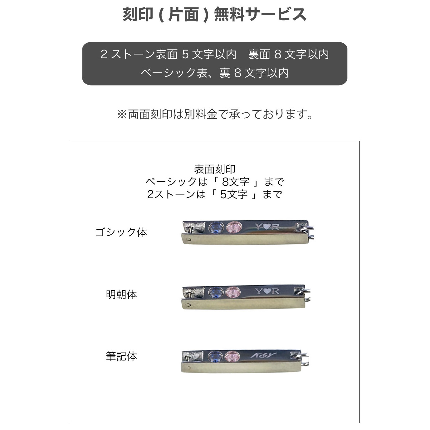 留め具パーツとメインパーツを一体にすることで、パーツ数を減らし、よりシンプルに、且つ留め具が持ちやすく着用しやすくしております。お互いの誕生石を入れてペアにおすすめです。お好きな言葉を、無料で刻印いたします。