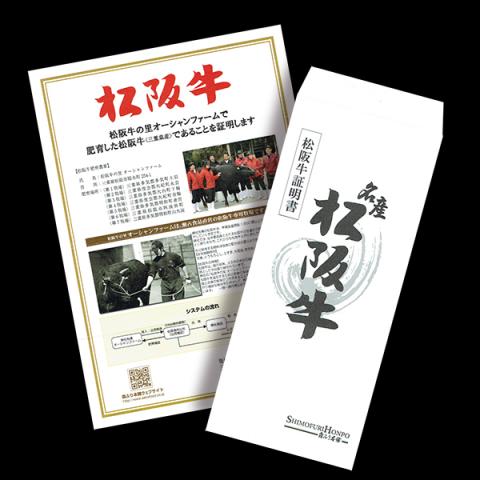 大きな「名産松阪牛」の文字が高級感をさらに感じさせます。松阪牛証明書も一緒に同梱いたします。 松坂牛の味はもちろんですが、カタログギフトのカタログやギフトボックス、松阪牛のお届けの際のパッケージにもこだわります。