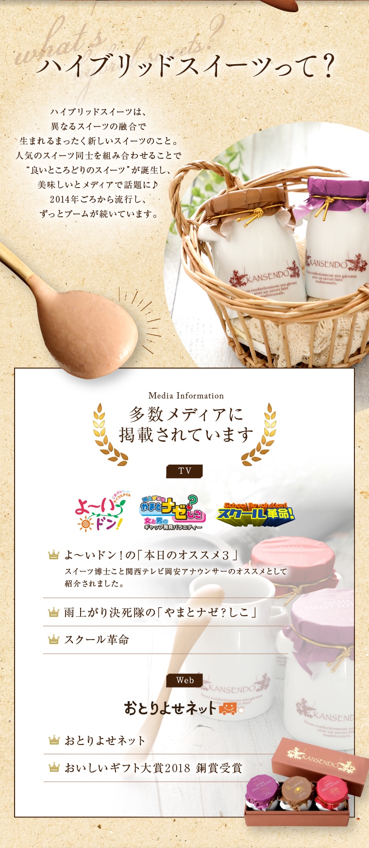 餅屋として個人事業1950年創業。のちに和菓子製造販売にも着手。2006年から生チョコ大福など洋素材を取り入れたハイブリッド和スイーツを中心とするギフト中心に舵切。2007年オンラインショップ事業に進出。2021年に株式会社として法人化。百貨店に負けないギフト商材をコンセプトに運営。
