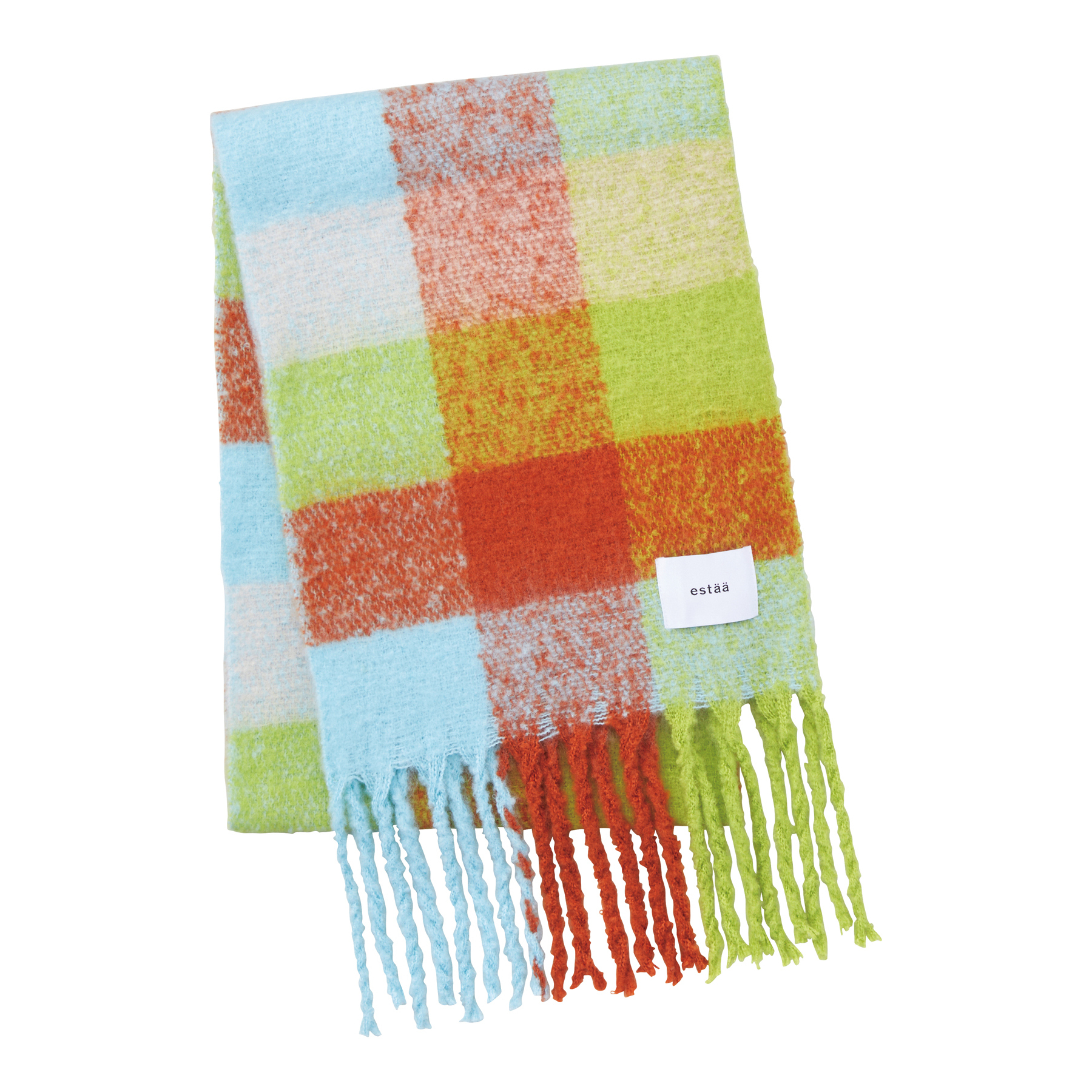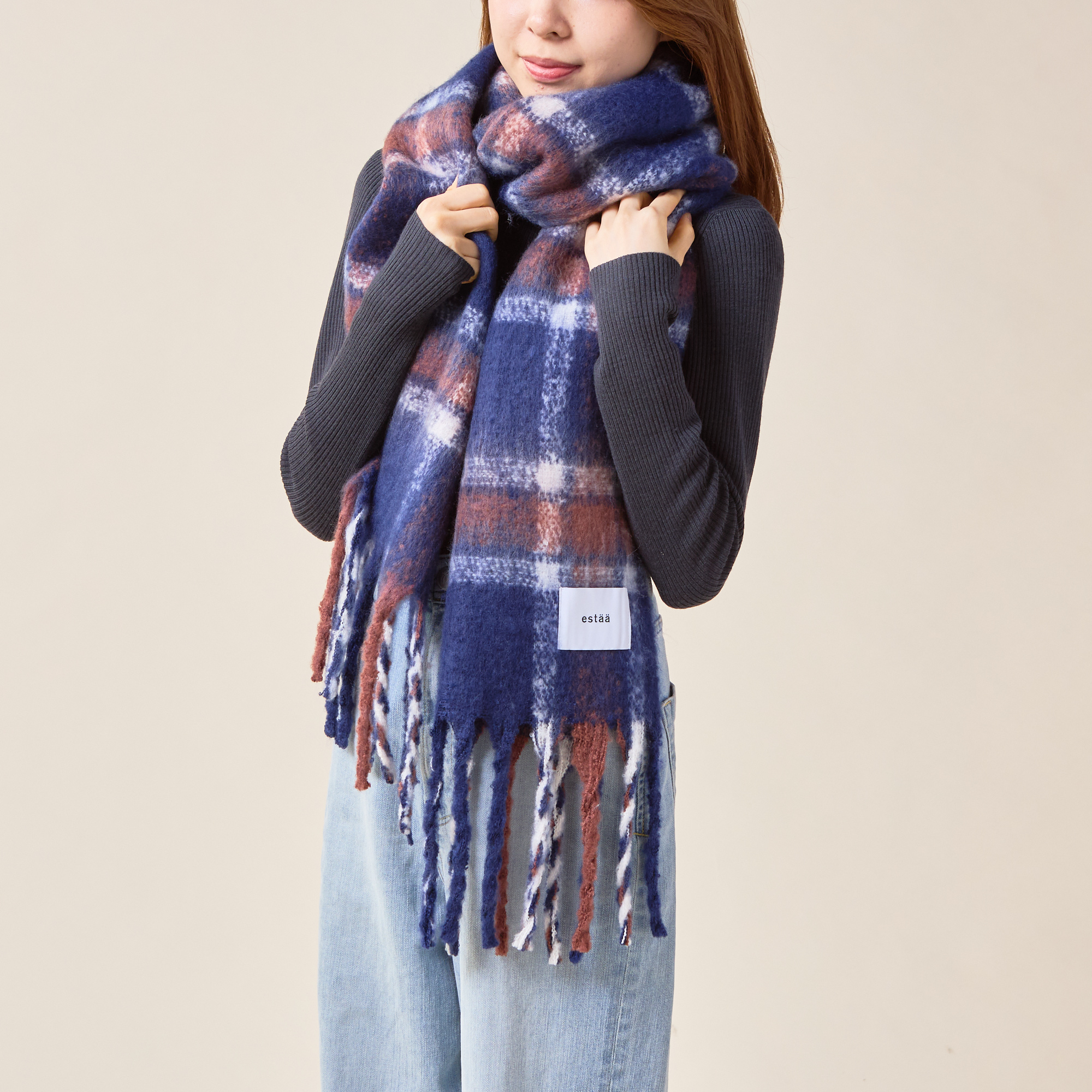 大口注文・法人のお問い合わせはこちらソフトな肌触りで、たっぷりボリューム感のあるトレンドライクなマフラー。日々のコーディネートにアクセントを与えてくれる色鮮やかなブロックチェックは、防寒効果が高く手洗い可能な冬のマストアイテムです。