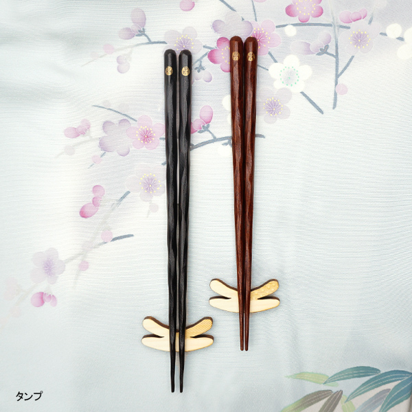 とんぼの羽をかたどった箸置きにお箸をセットすると、とんぼが完成します。 とんぼは前にしか飛ばず後退しないことから「勝ち虫」とも呼ばれ、縁起物として古くから好まれています。 これからの未来を祈願、応援するギフトとして、様々なシーンでお使いいただけます。