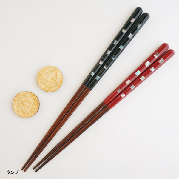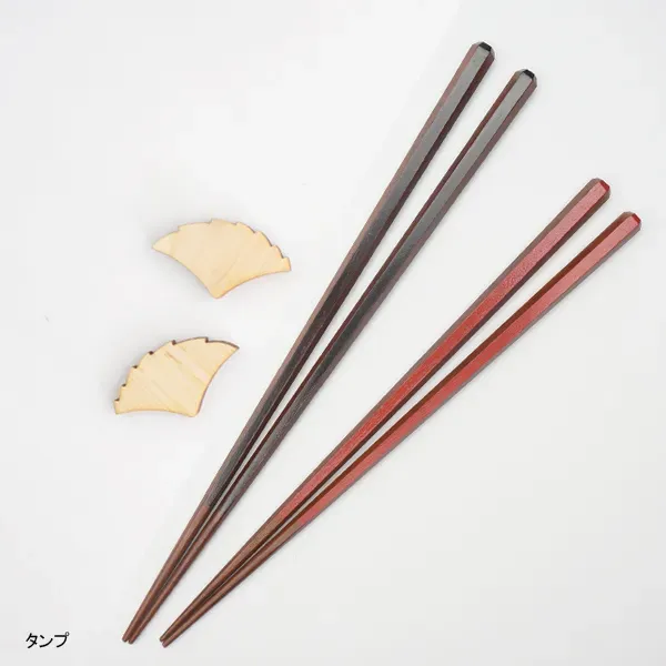 | 【ペア】丸八箸 夫婦セット | 素材/繊維 箸:天然木(タモ) 塗り:漆塗装 箸置き:天然木(桧) 塗り:みつろう サイズ 箸:大23.5cm、中21.5cm 外装サイズ 【桐箱】サイズ:28×14×2.5cm 食洗機利用:不可 |