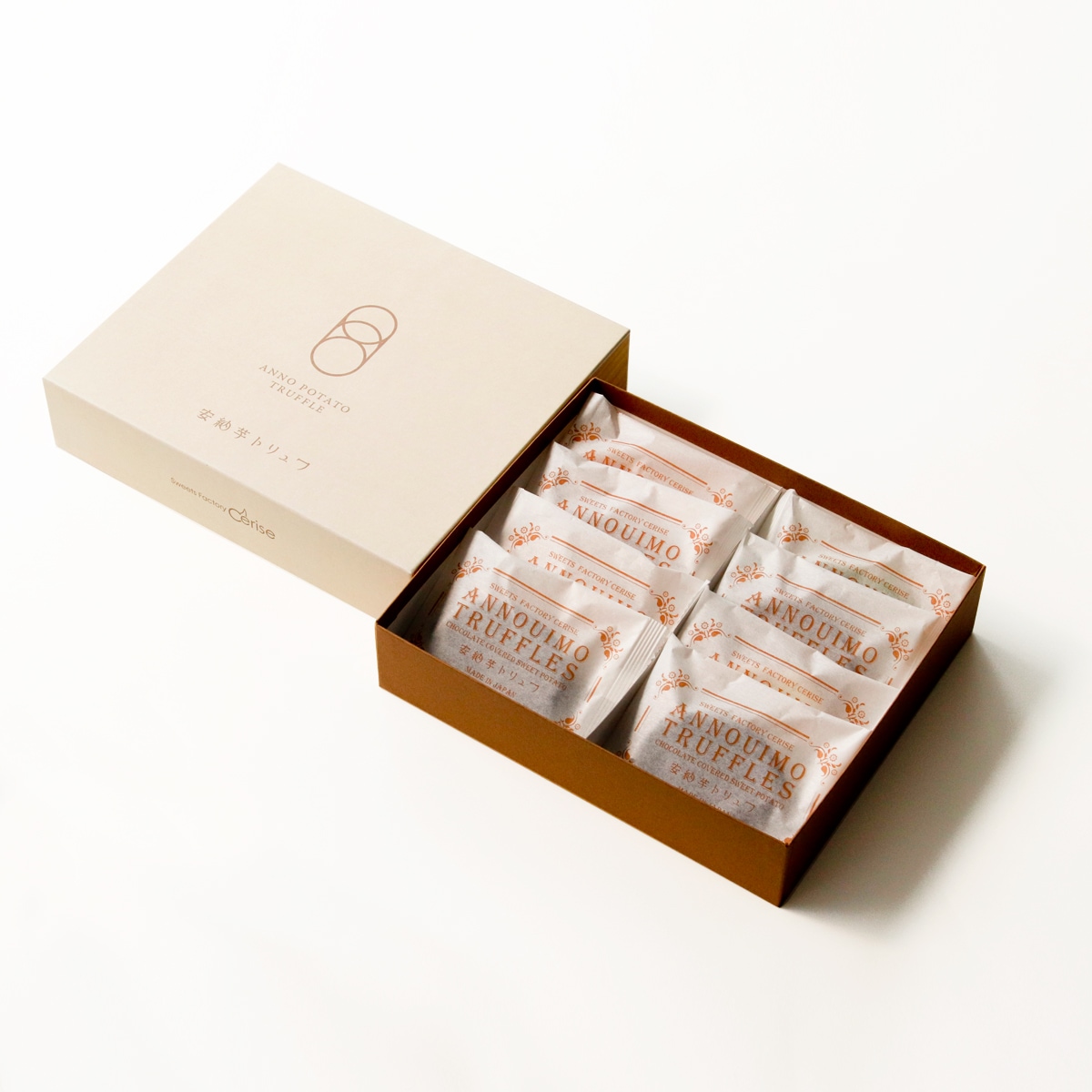 安納芋キャラメルトリュフチョコレートは、種子島産の安納芋を贅沢に使いベルギー産のチョコレートで包んだ芳醇なチョコスイーツです。クリーミーな安納芋とキャラメルチョコレートの絶妙なハーモニーが楽しめる、特別なひと時をお届けします。