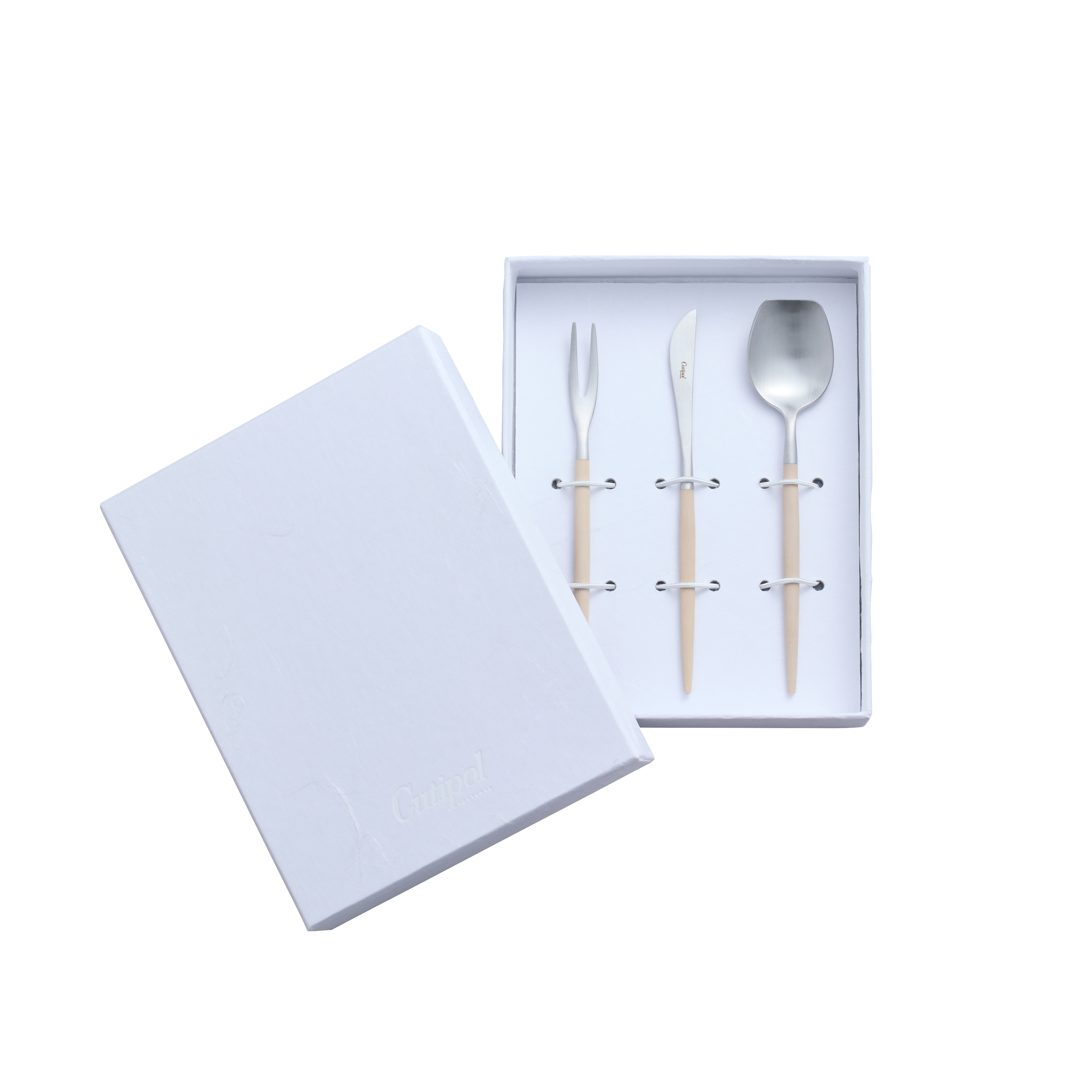 大口注文・法人のお問い合わせはこちらクチポールと日本の伝統を融合させて造り上げられた、和菓子用のカトラリーギフトセットがこの度発売となりました。 日本の伝統文化である和菓子は、見た目の美しさだけではなく、味、香り、食感、風味など、五感を総合的に刺激する芸術です。 私たちが発案したのは、その伝統的な和菓子の味わいを存分に感じていただける、3つのカトラリーを組み合わせた特別なセット。