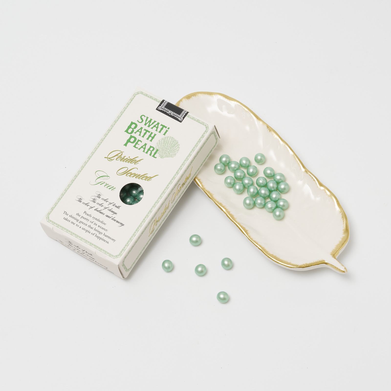 SWATi BATH PEARL®をイメージした優しい質感と色合いの《SWATiシェルハンドタオル》と、新色!パールモチーフの入浴料《SWATi BATH PEARL®GREEN》を華やかなケースにセットした特別なギフトコレクションです。
