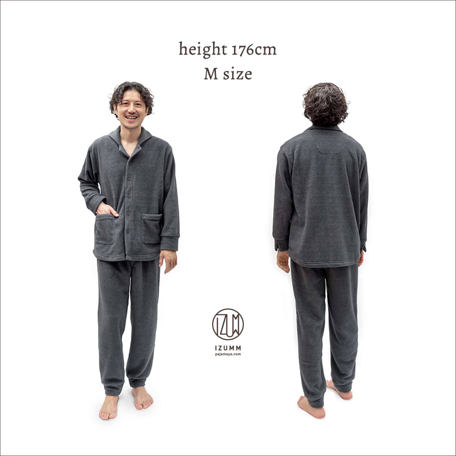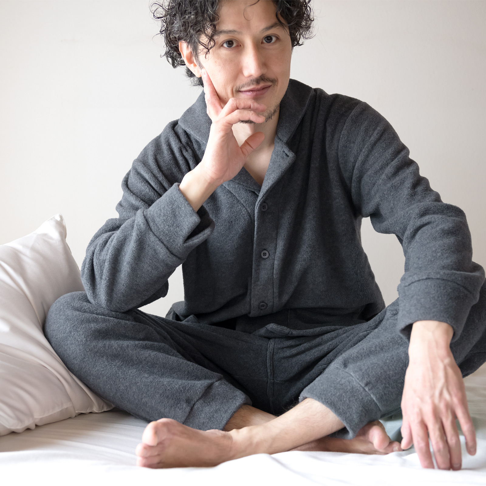 前開き仕様の上着は、さっと羽織れるのでお家で過ごすカーディガンとしても着用いただけます。 パンツはメンズに嬉しい前開き付きで、絞り型の裾は冷気が入りにくい作りに。 共布で切り替えたカフス型の袖口は、スリット入りでさっとたくし上げやすくなっています。