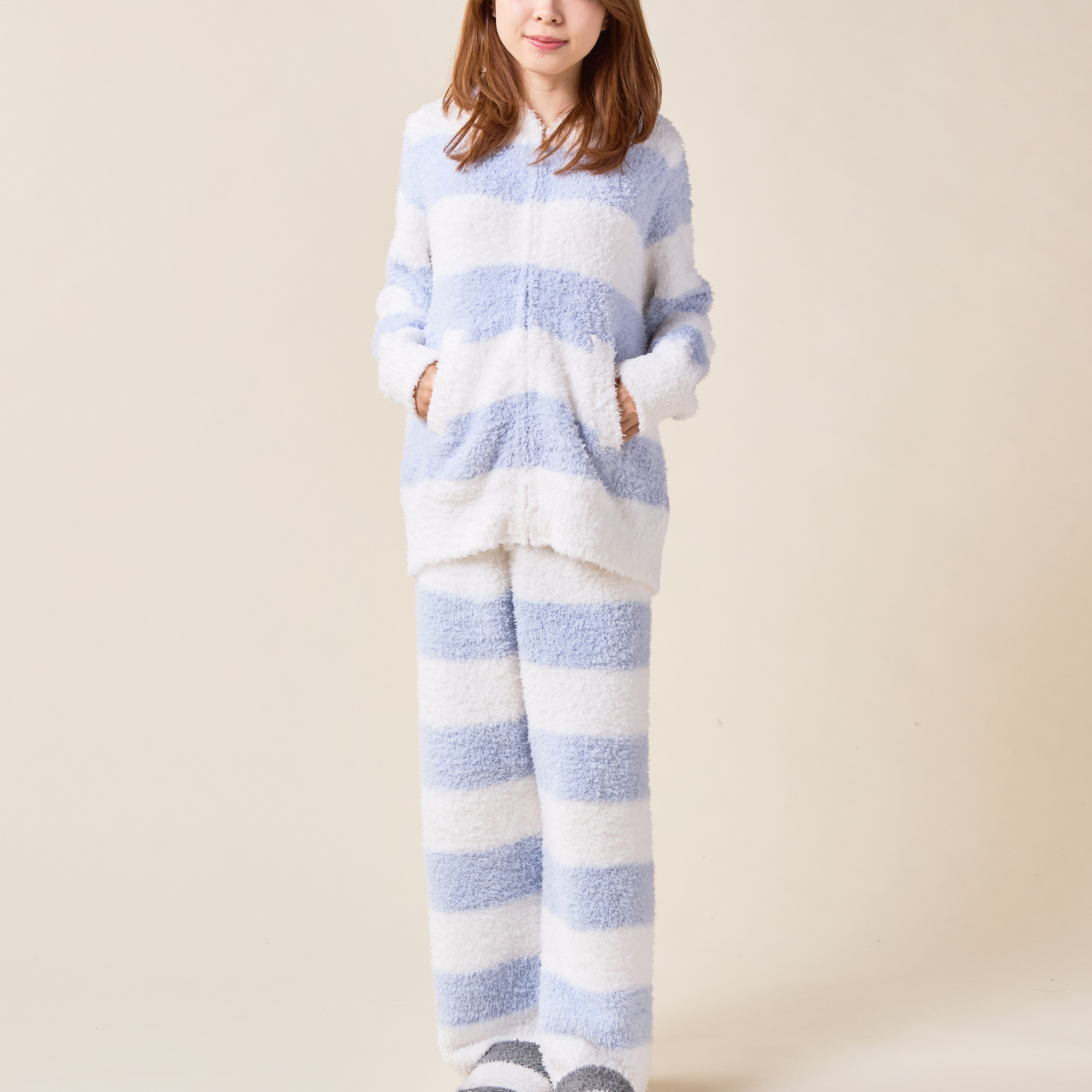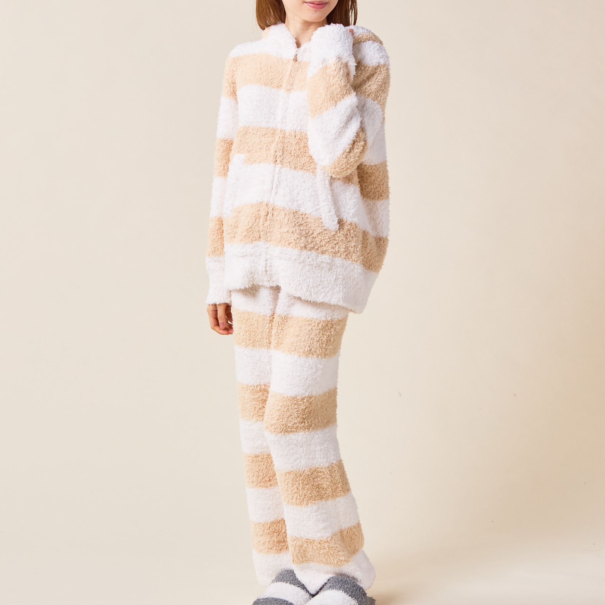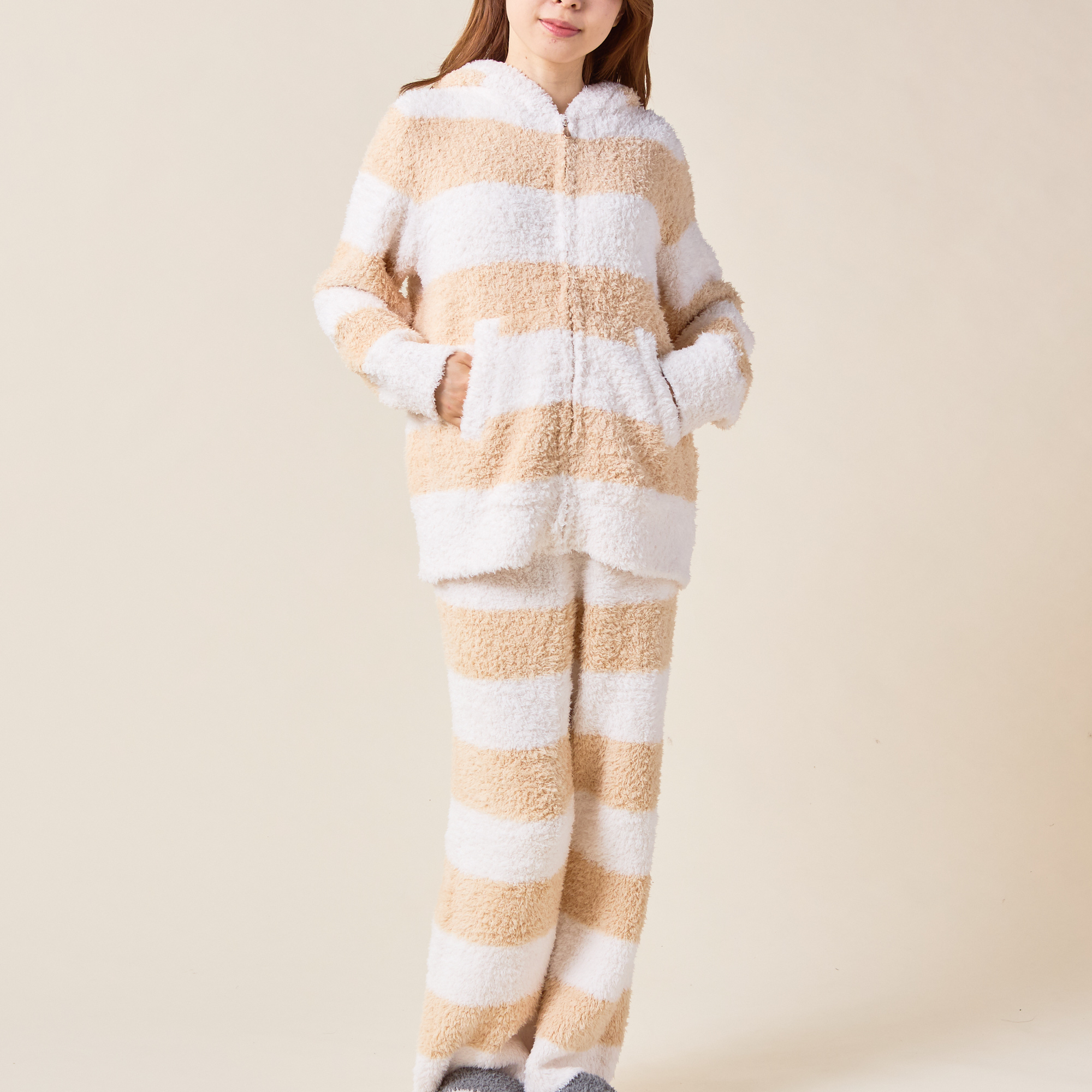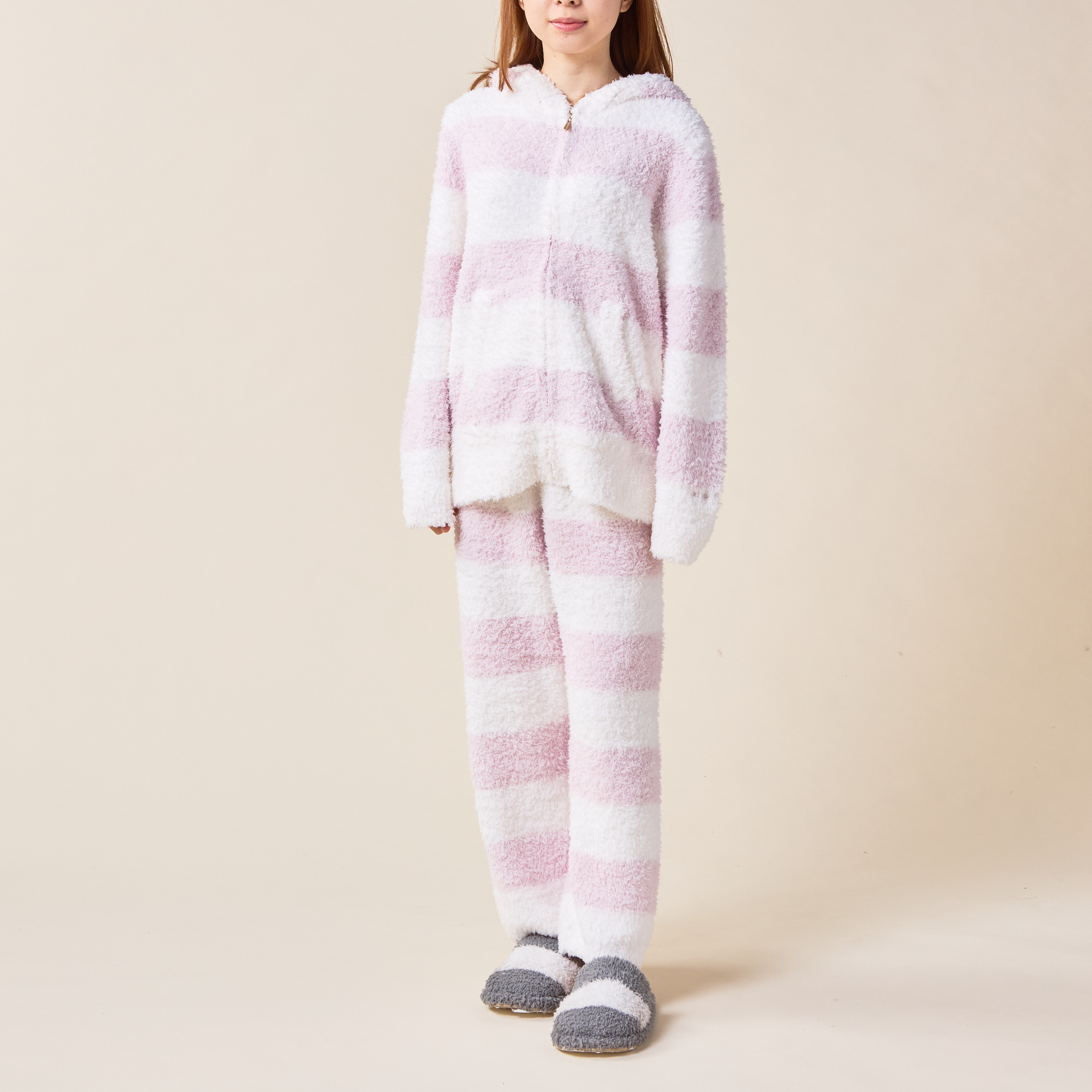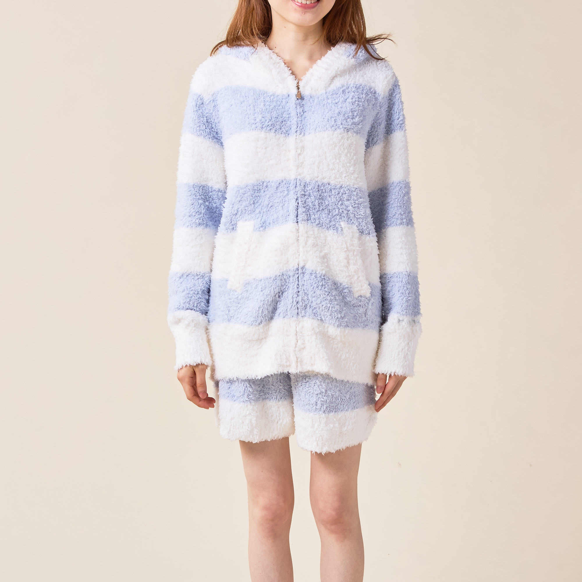 大口注文・法人のお問い合わせはこちら“大人のデザート”をコンセプトにした人気ブランド【gelato pique】の上下セットのルームウェアです。やわらかく、ふわふわもこもこの肌触りの素材で作られた、2ボーダーのパーカと、同じデザインのパンツで快適なお家時間を。パンツはショートとロングの2種類からお選びいただけます。