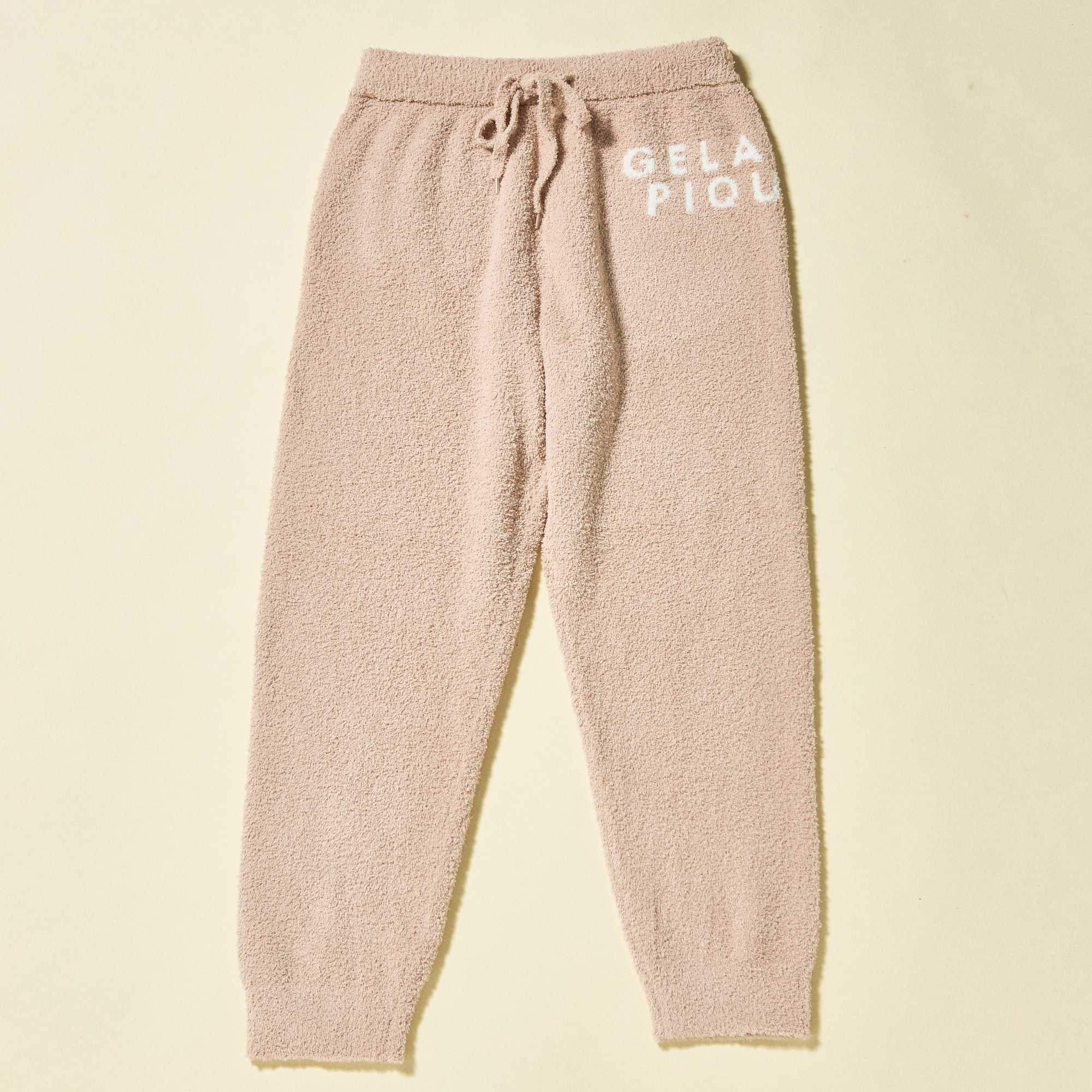 腰にロゴジャガードを入れた裾リブ入りのロングパンツ。