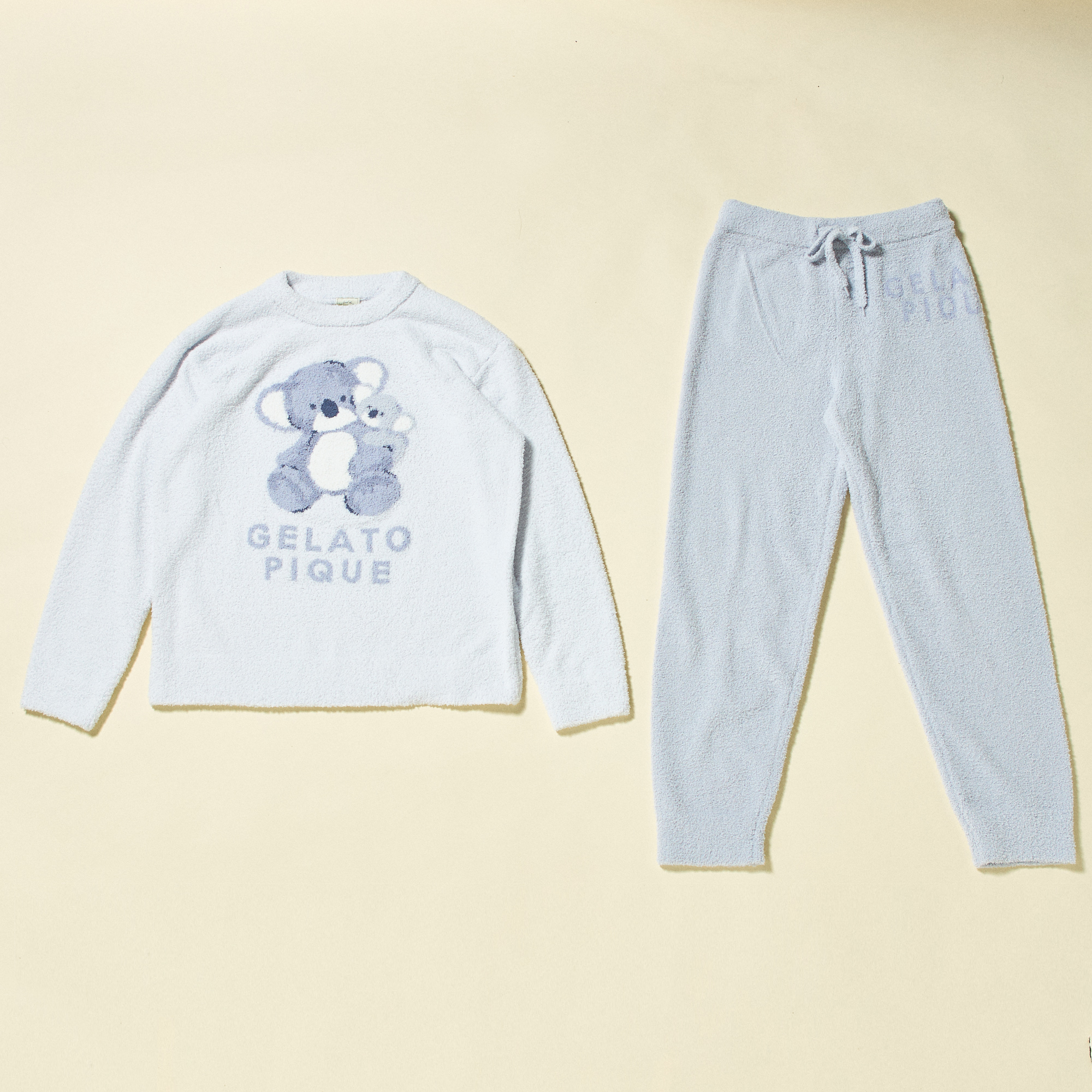 ぎゅっと親子でハグするアニマルたちに胸キュンなこちらの上下セットのルームウェア。ジェラートピケらしい淡いカラーリングもとってもキュート。ややリラックス感のあるサイズのボトムスは、裾を絞っているので着用していてもたつくこともありません。ふっくらとしたベビモコ素材の肌あたりの良さも魅力です。