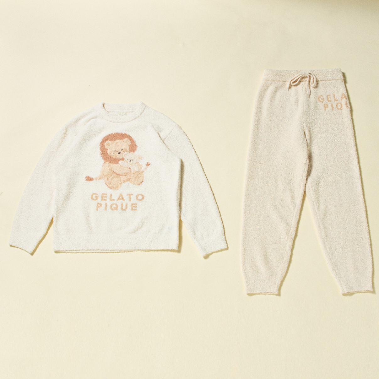 大口注文・法人のお問い合わせはこちらぎゅっとハグするコアラ、ライオン、くまの親子に胸キュン。アニマルたちのキュートな姿をジャガードで表現した、柔らかな'ベビモコ'素材のセットアップアイテムです。