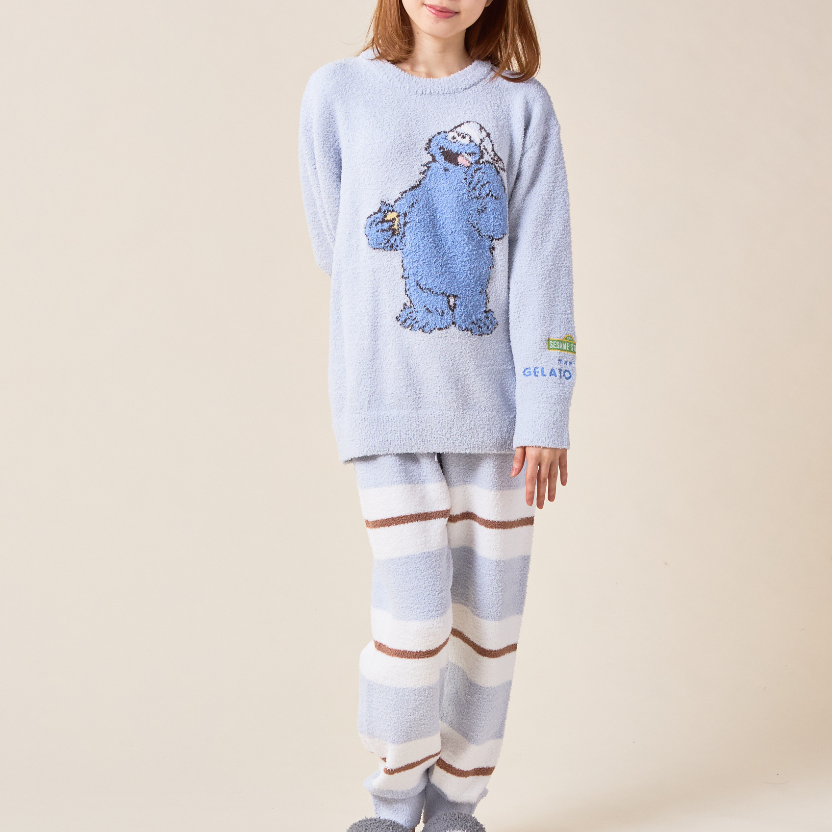 『SESAME STREET』とのコラボレーション第2弾は、1日が終わり、眠りにつくまでの至福の時間をイメージした優しいコレクション。gelato piqueらしい優しいカラーをベースに、オリジナルで描き起こしをした特別なアートを使用しているプルオーバー&ロングパンツのセットです。