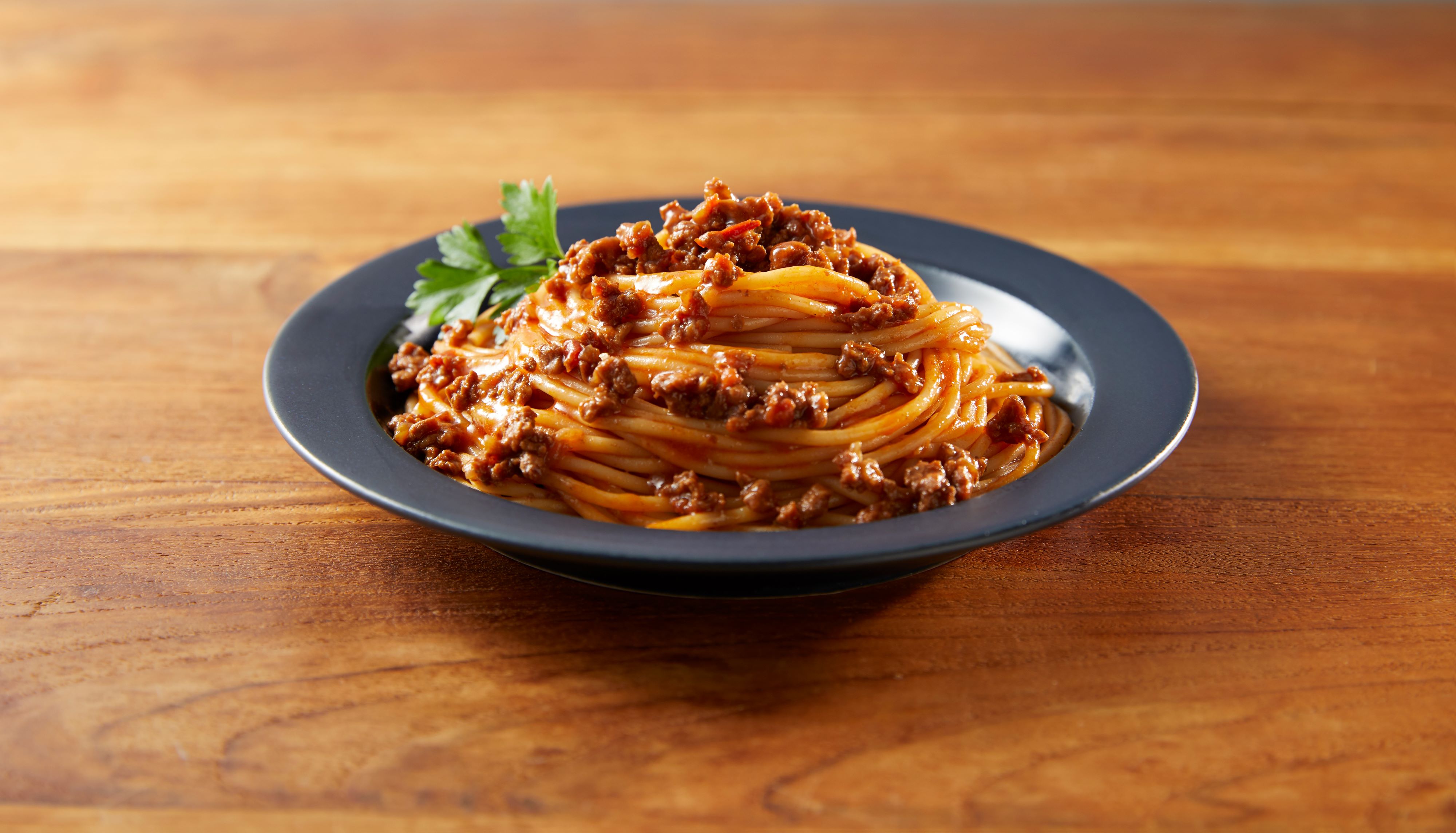 牛・豚のひき肉に炒めた香味野菜と数種類のハーブを加えて煮込み、肉の旨みをたっぷり引き出したソースです。