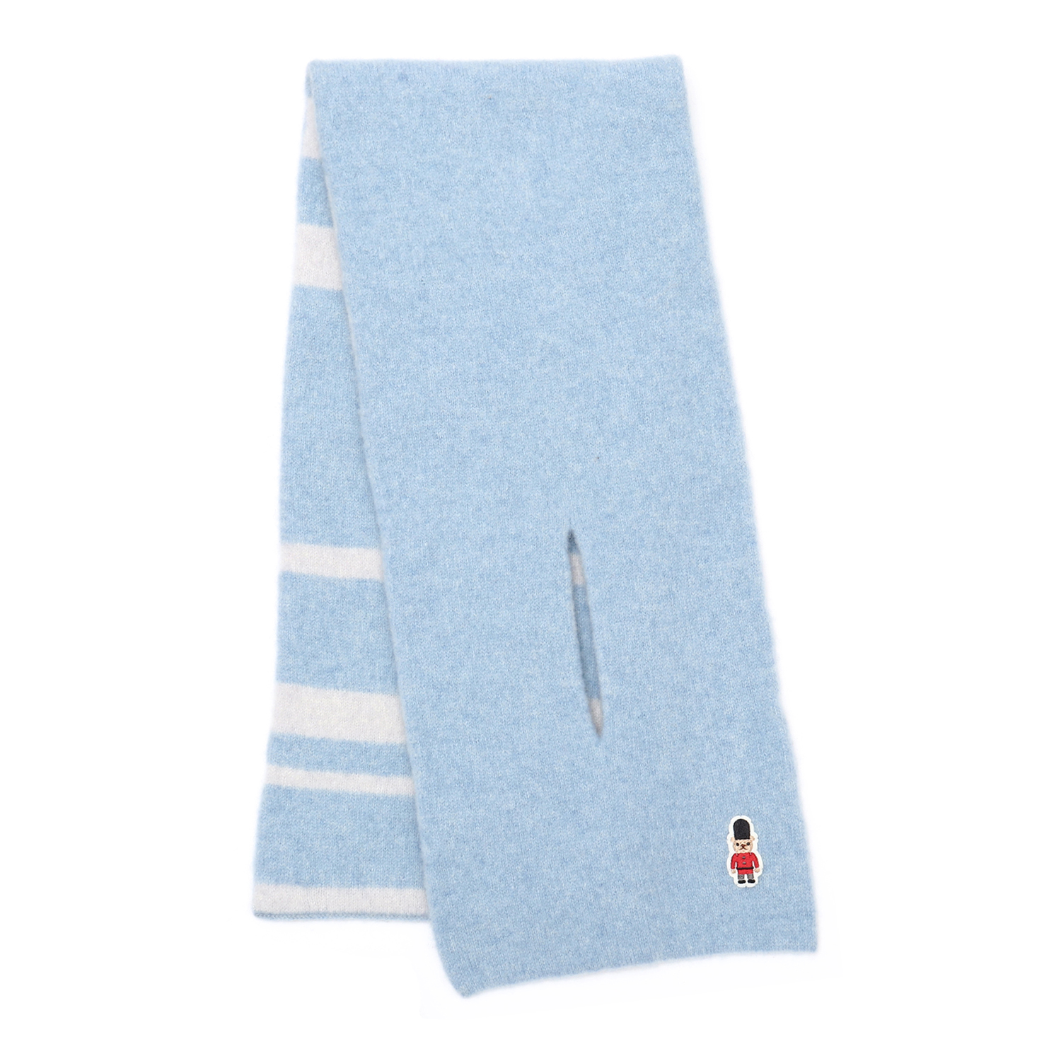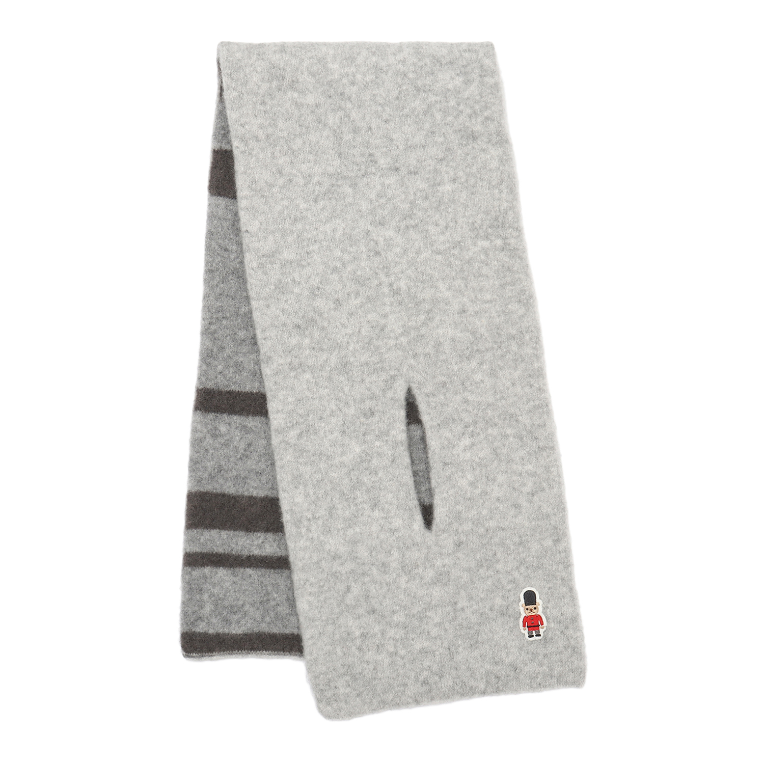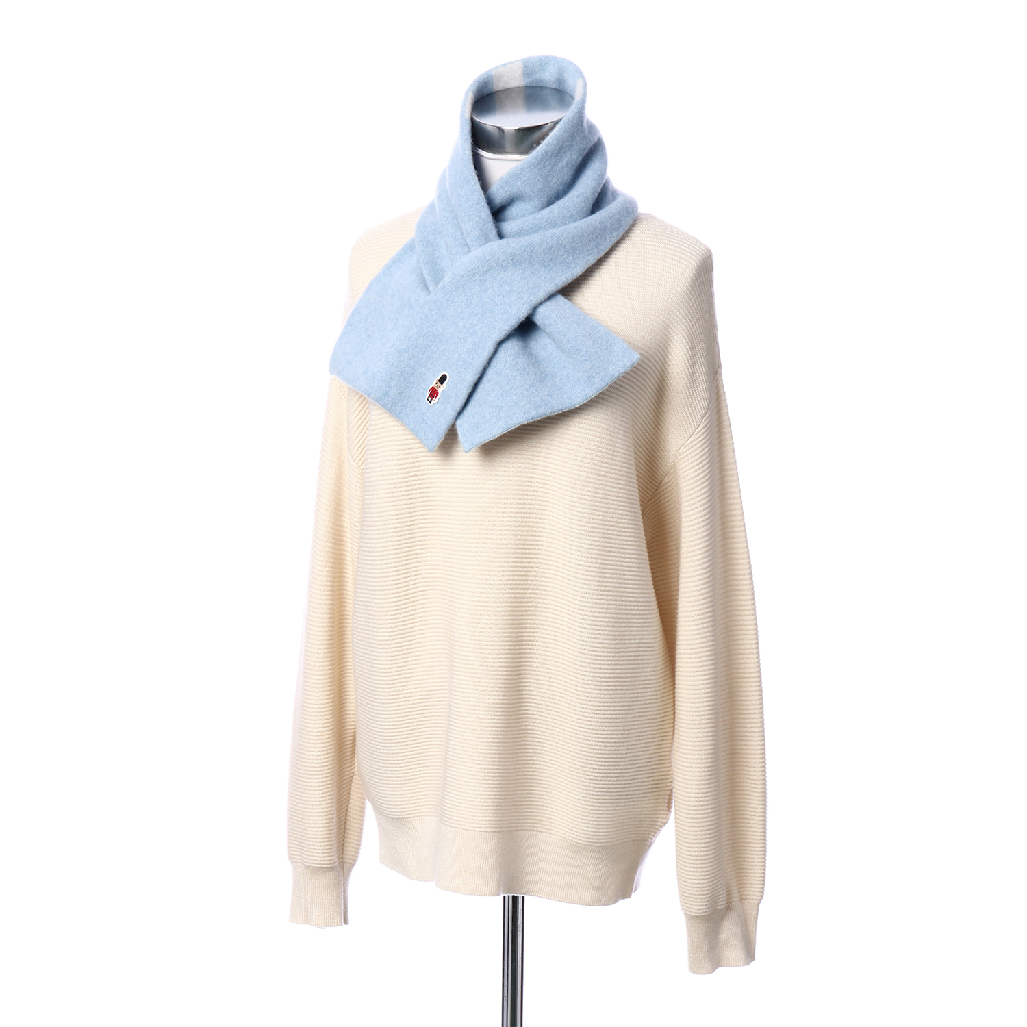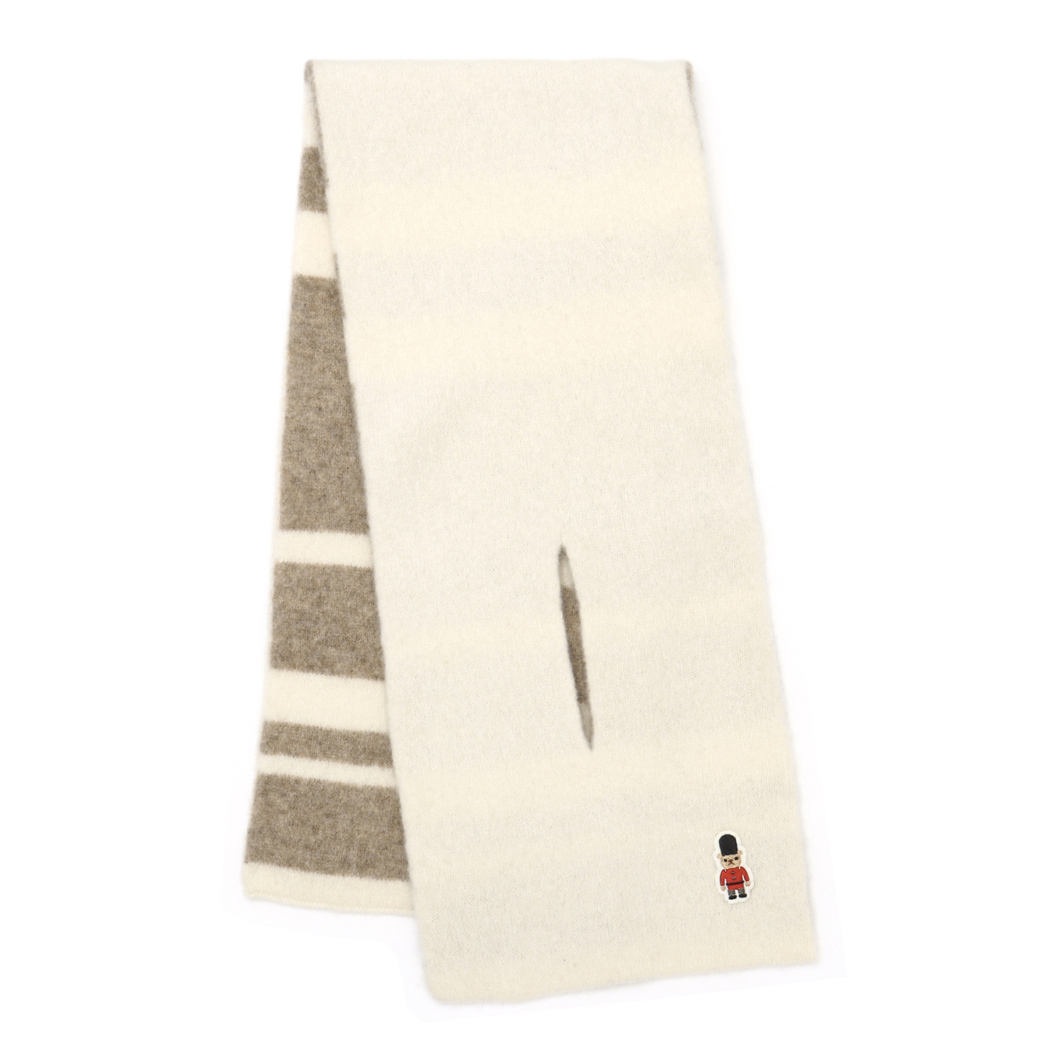 大口注文・法人のお問い合わせはこちら人気のバッキンガムベアがポイントのニットマフラー。 表が無地で裏面がボーダー柄になっており、リバーシブルでご使用頂けます。差し込みタイプなので着脱もスムーズです。ご家庭で手洗い可能な仕様になっております。
