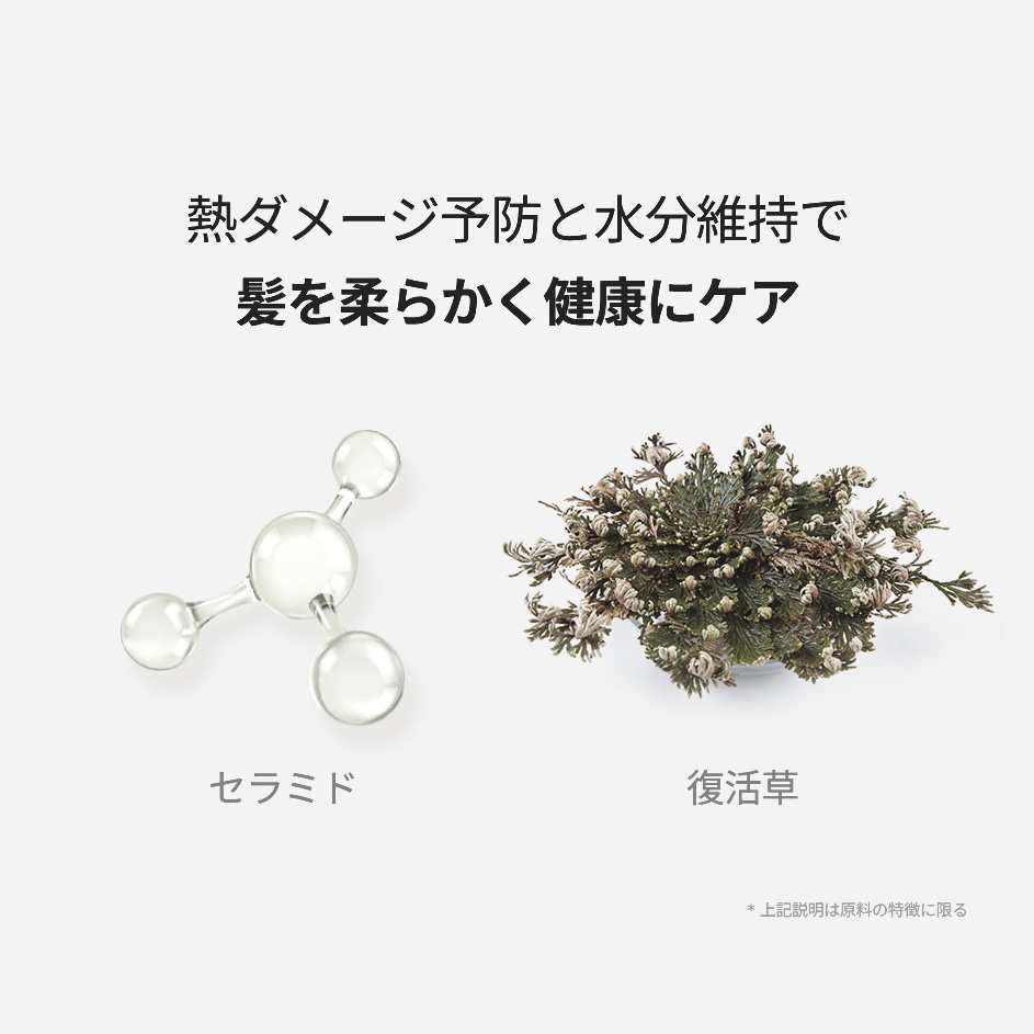 | 成分 | グリセリン、ステアラミドプロピルジメチルアミン、ベヘナミドプロピルジメチルアミン、ミリスチルアルコー、アミノプロピルジメチコン、アモジメチコン、(C12-14)s-パレス-7、DPG、加水分解ケラチン、加水分解シルク、加水分解ダイズタンパク、加水分解トウモロコシタンパク、加水分解コムギタンパク(小麦)、トレハロース、ゼイン、アルガニアスピノサ核油、ホホバ種子油、バオバブ種子油、ババス油、メドウフォーム種子油、シア脂、パンテノール、セラミドNP、ケラチンアミノ酸、加水分解フィブロイン、加水分解シルクエチル、スクレロカリアビレア種子油、エタノール、ベルガモット果実油 |
