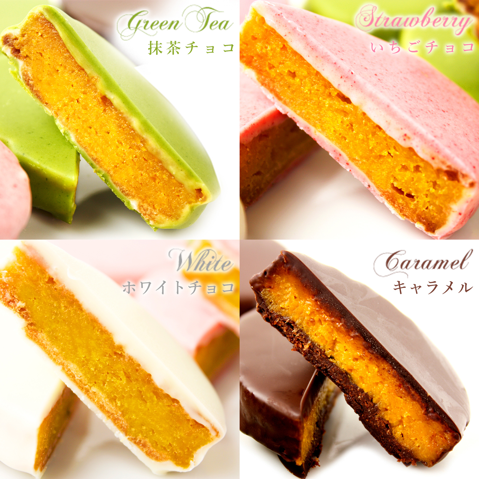 | 原材料 | 安納芋(国産)、チョコレーコーチング、バター、砂糖、さつまいも、卵、小麦粉、洋酒、粉飴、生クリーム、抹茶、苺パウダー/香料、乳化剤(焼き上げている為、アルコールは飛ばしております) |