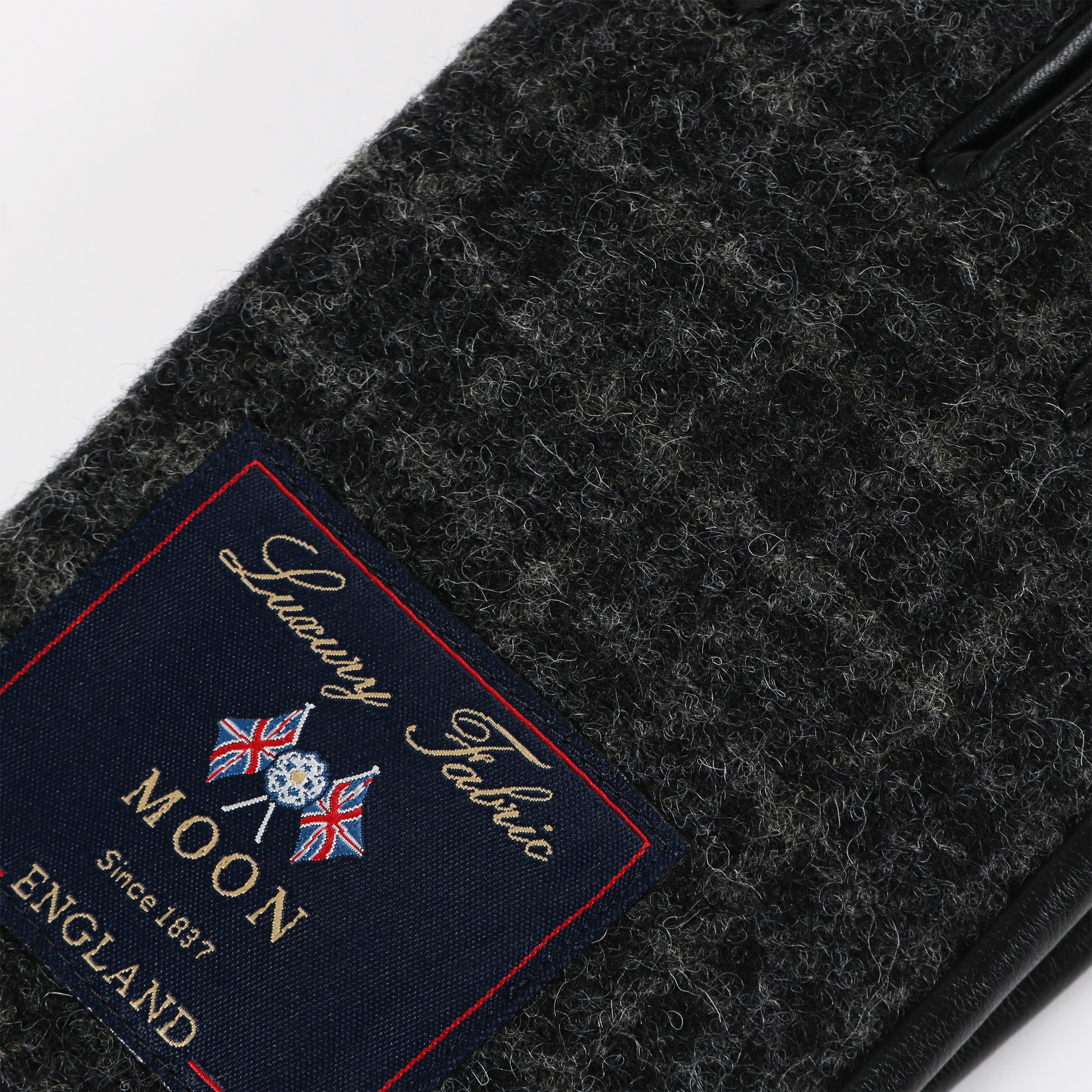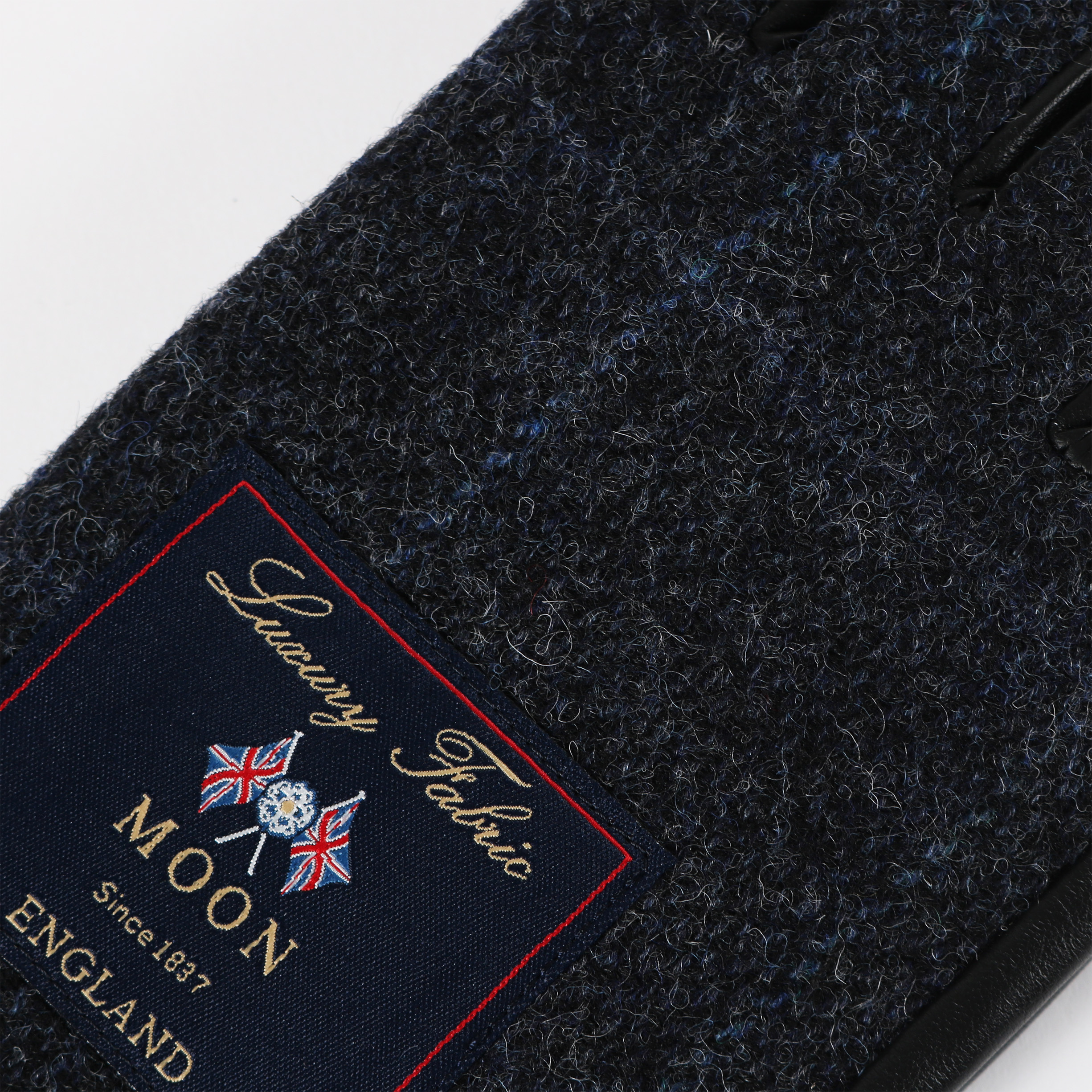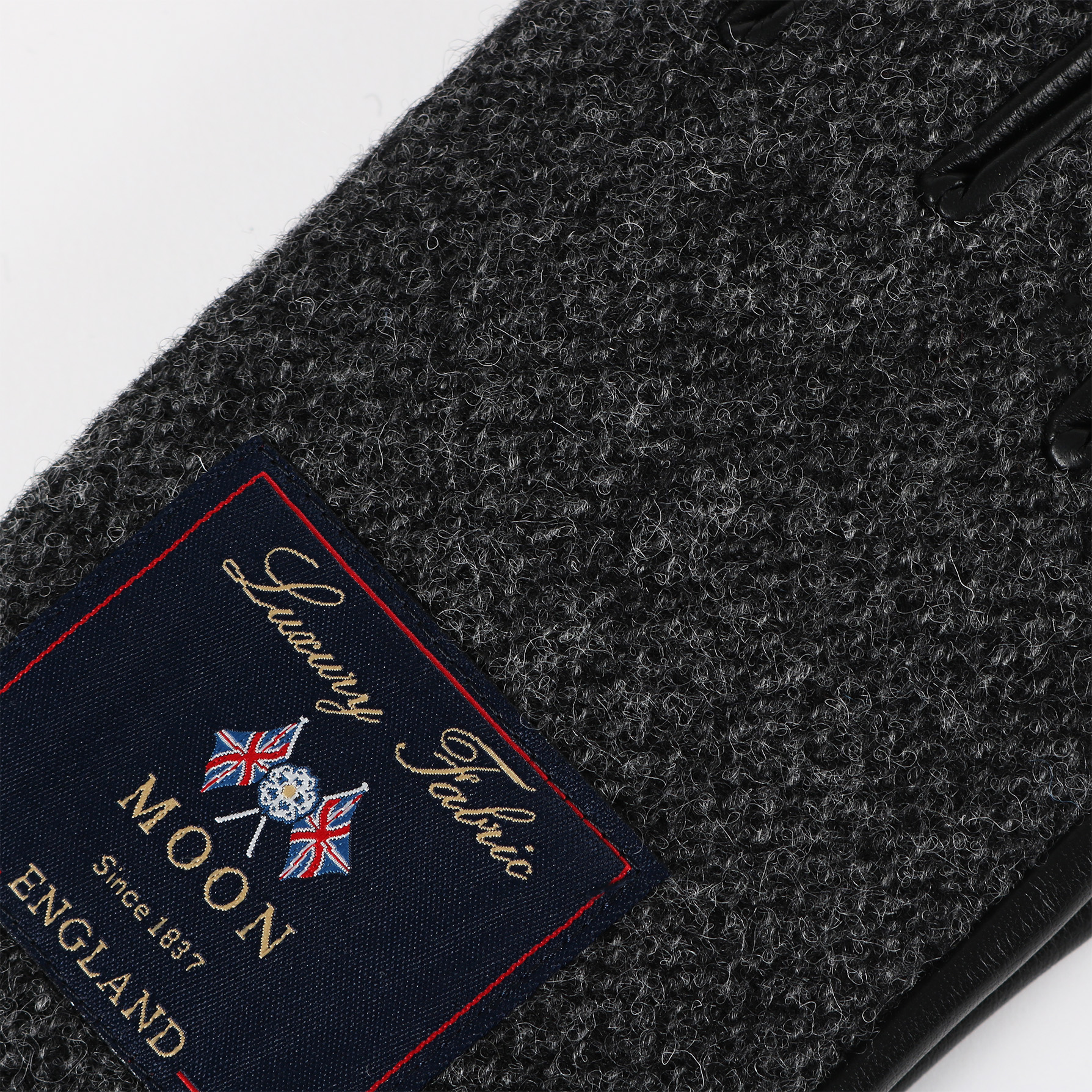 トラッドなMOON生地とレザーのコンビグローブ。様々なスタイルに合わせやすいベーシックな柄で、裏地にはあたたかな起毛を使用しています。