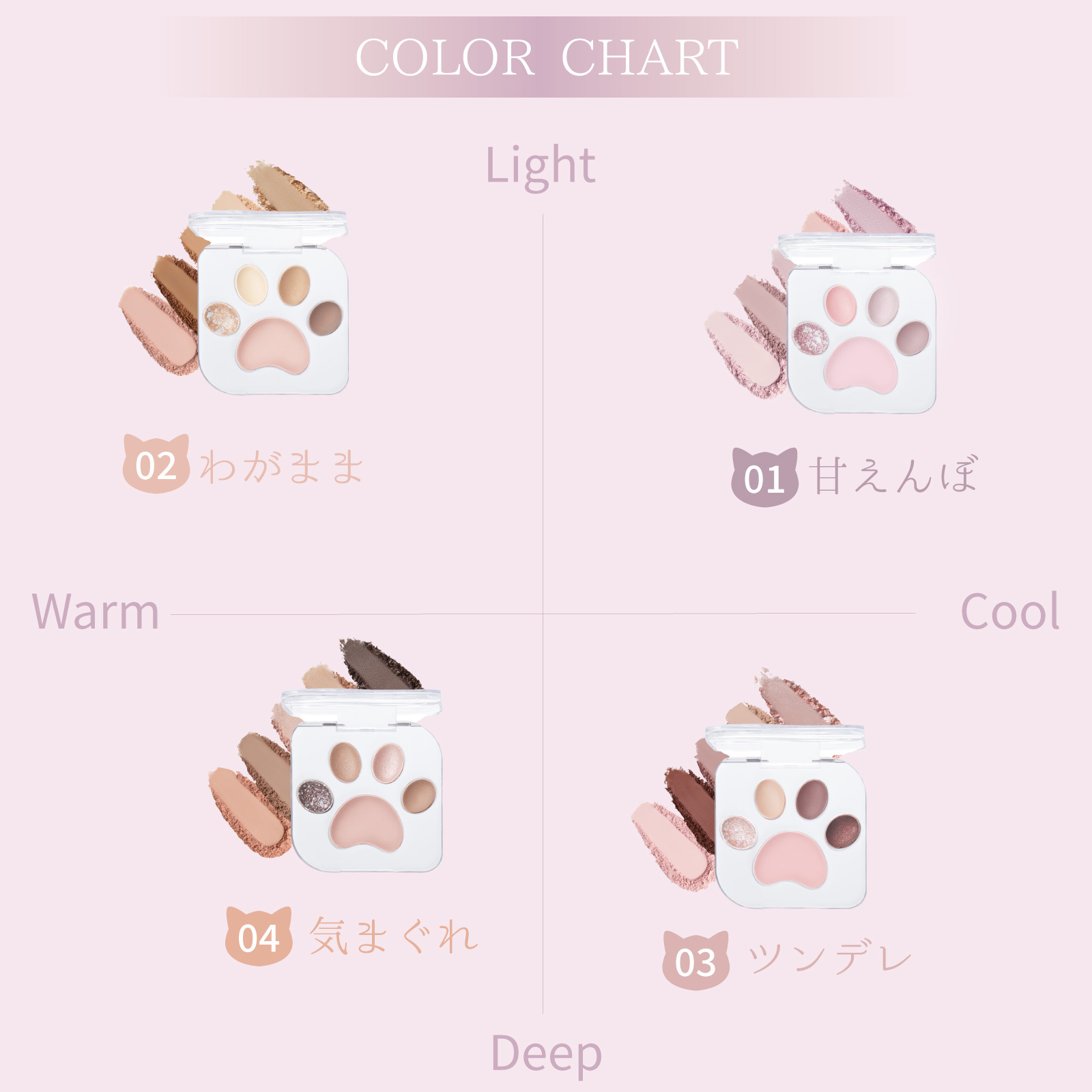 ねこの手、あなただけに貸してあげる。 ねこの性格をイメージしたカラーバリエーション × 肉球モチーフのアイシャドウパレット!
