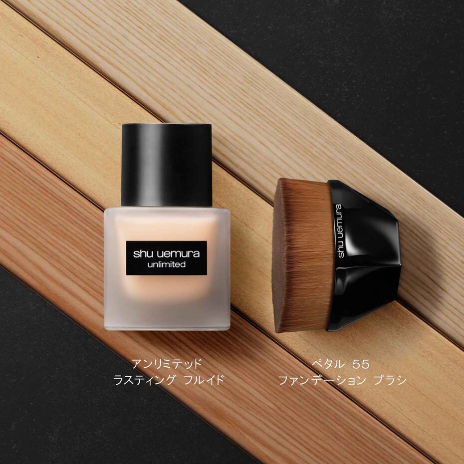 『shu uemura』を代表する、いくつものベストコスメを受賞している人気のファンデーション「アンリミテッドラスティング フルイド」と高密度×垂直面構造の繊細なブラシで、ファンデーションを薄く自然に塗布できる「ペタル 55 ファンデーション ブラシ」をセットにしました。