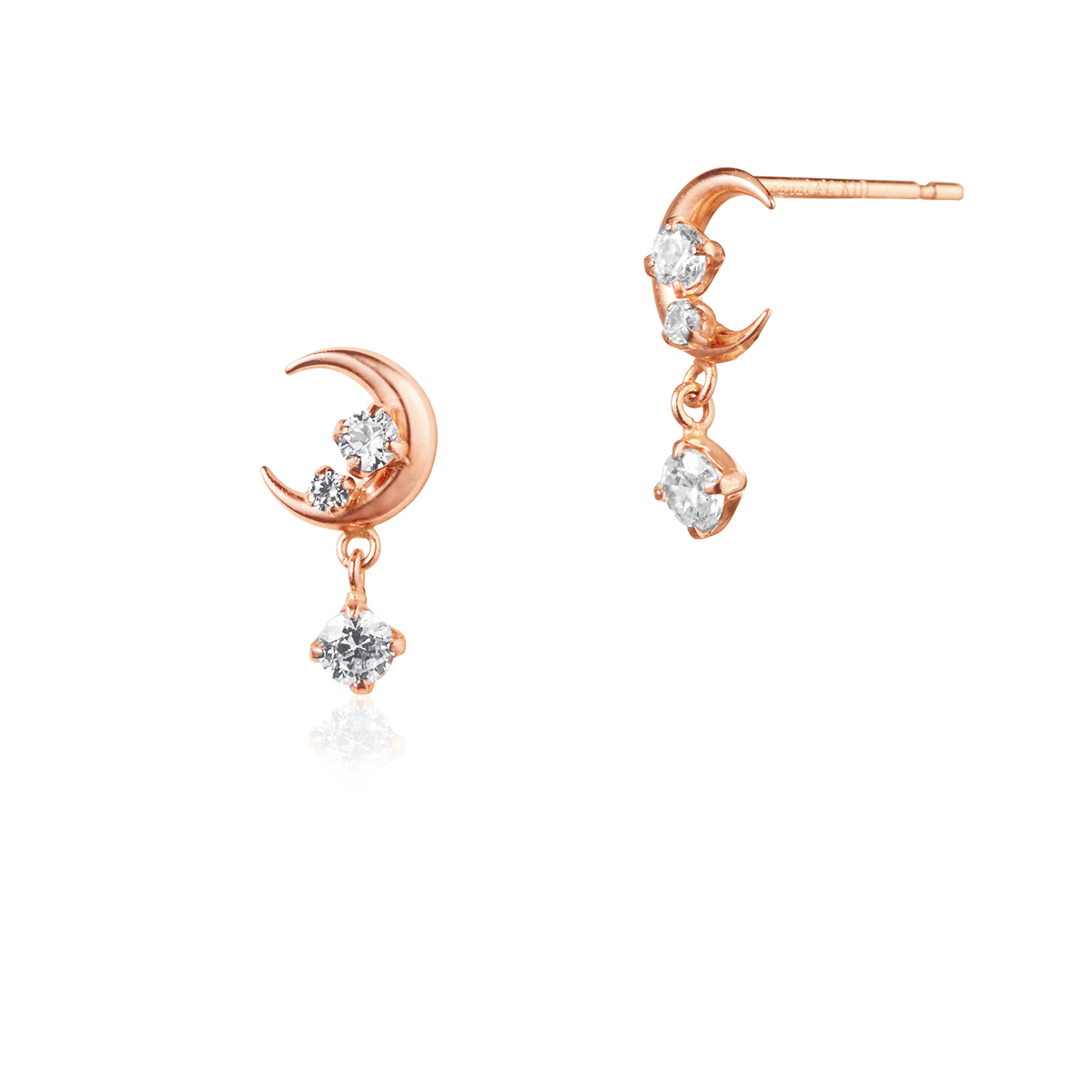 揺れながらきらめくキュービックジルコニアを添えた、月モチーフのピアス。月モチーフは女性の魅力を引き出すといわれており、お守りのように身に着けるのもおすすめです。ピンクゴールドの柔らかな輝きが、耳元を可憐に彩ります。 【店舗問い合わせ品番:151646153113】