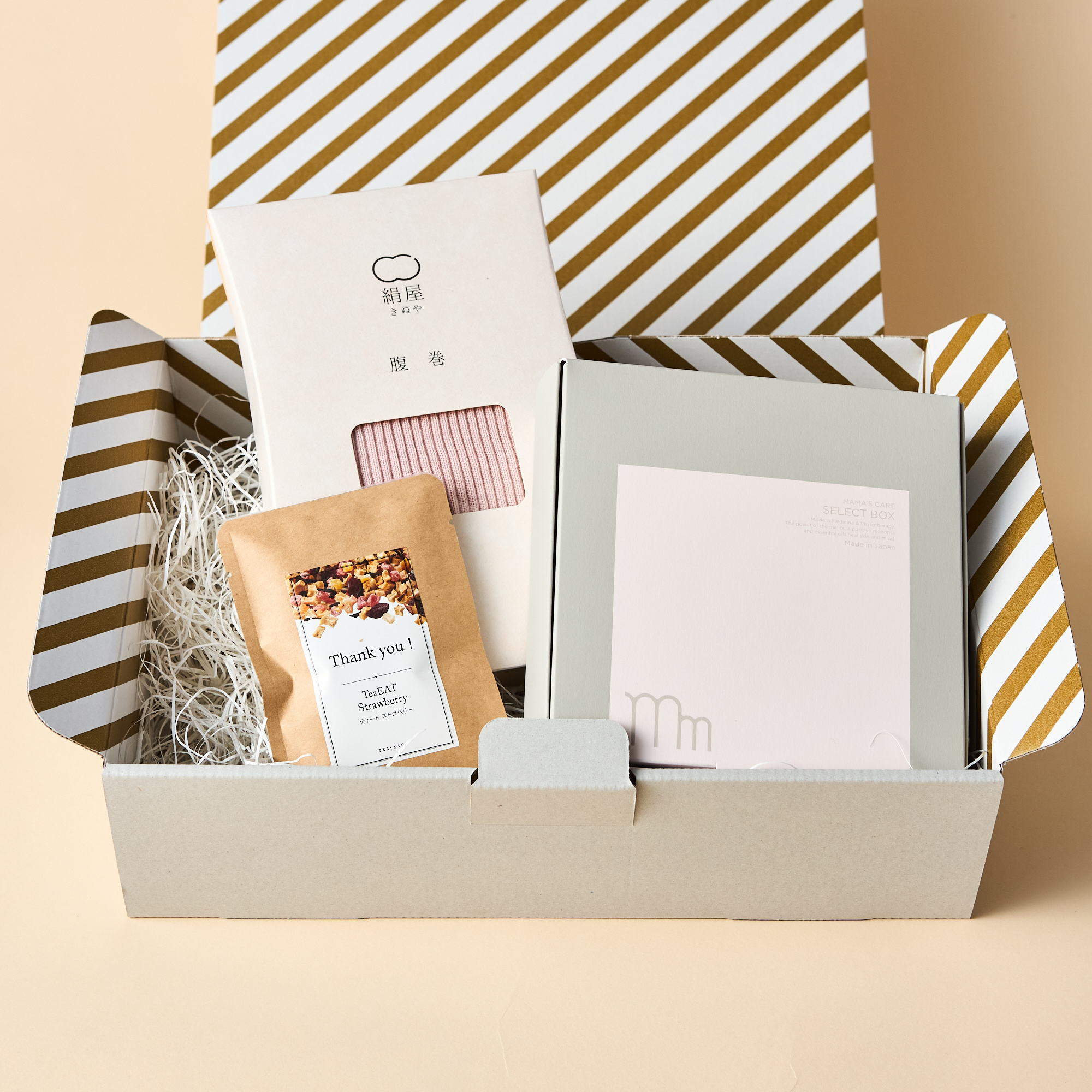 妊娠中から出産・産後まで、日々刻々と変化していく身体と向き合うママたちをサポートするママズケアのボディケア3点とTEAtriCOの代名詞である食べられるお茶「ティート」、シルクを中心とした雑貨ブランド「絹屋」のシルクリブ腹巻をお届け。妊娠中も、出産後もご使用いただけるセットです。