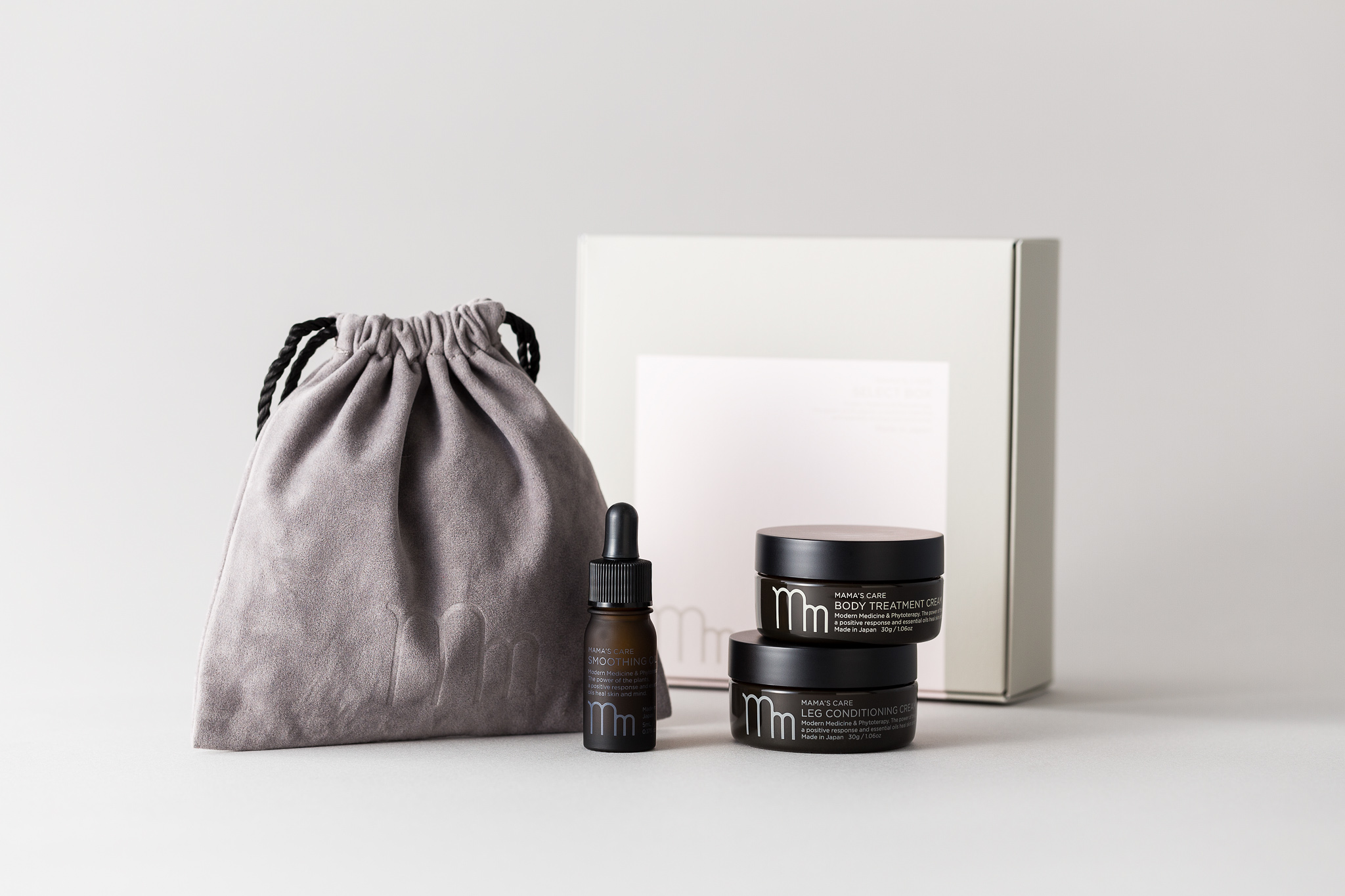妊娠中から出産・産後まで、日々刻々と変化していく身体と向き合うママたちをサポートするボディケア3点とポーチのセットです。