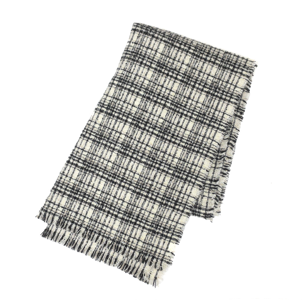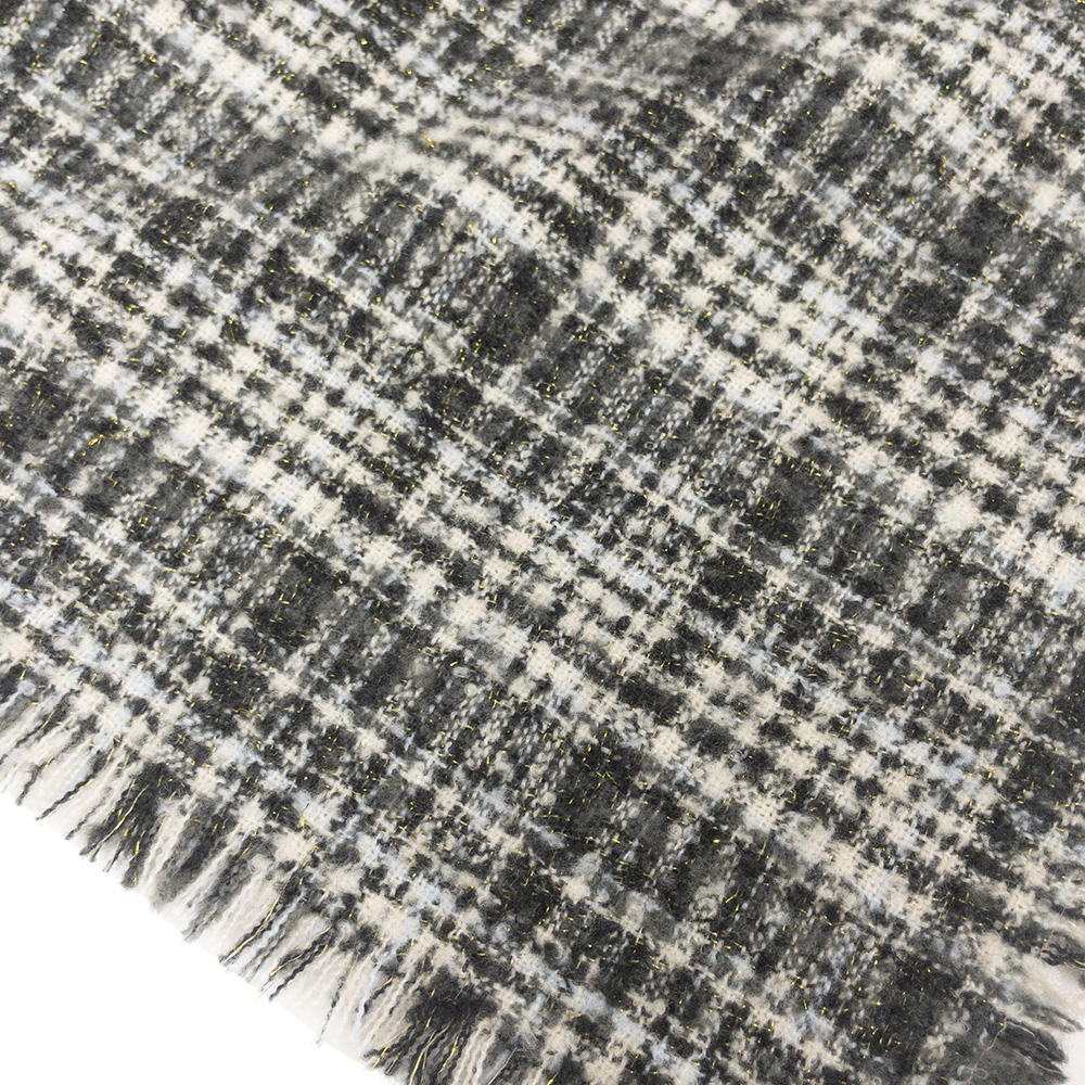 《カシミヤタッチ》ラメ入りツイード風チェックストール【O.WHITE】