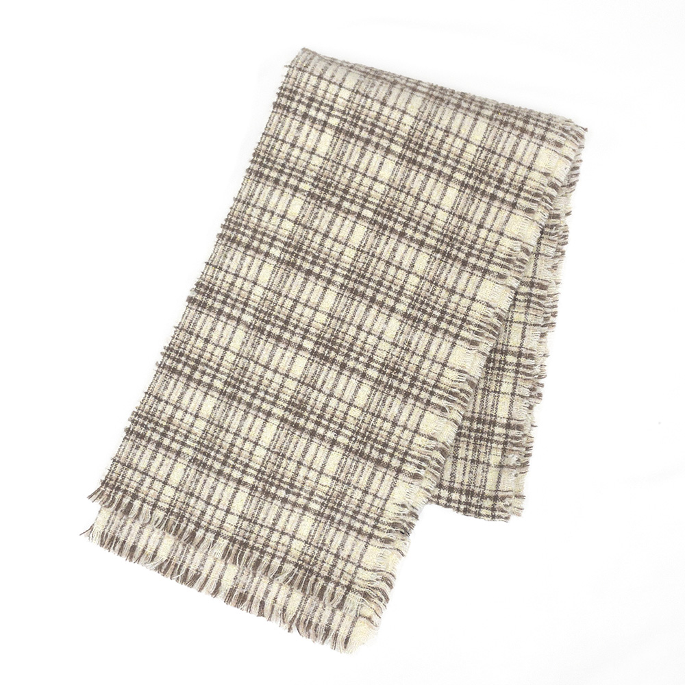 《カシミヤタッチ》ラメ入りツイード風チェックストール【BEIGE】