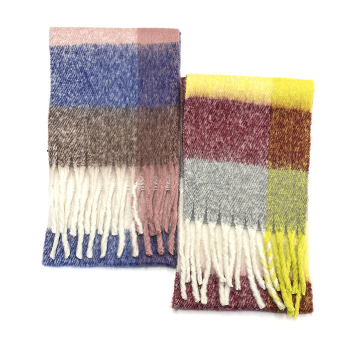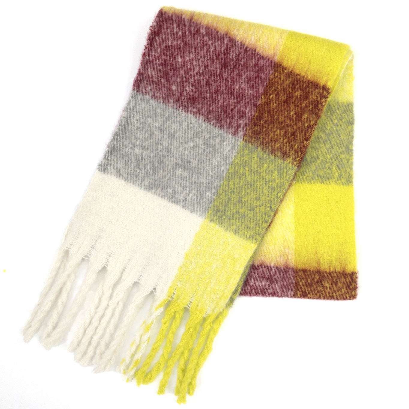 ボリュームフリンジカラーチェックストール 【YELLOW】