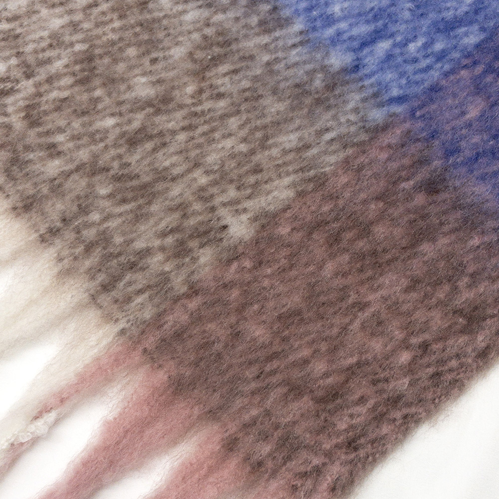 モコモコふんわりとした肌触りで、起毛感がり、温かみのあるルックスが特徴のストールです。