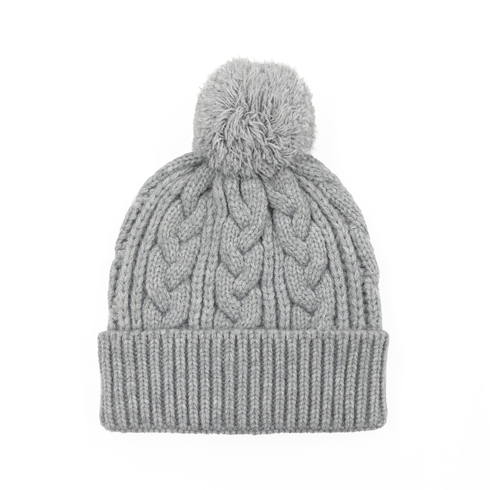 ポンポン付ケーブルニット帽【L.GRAY】