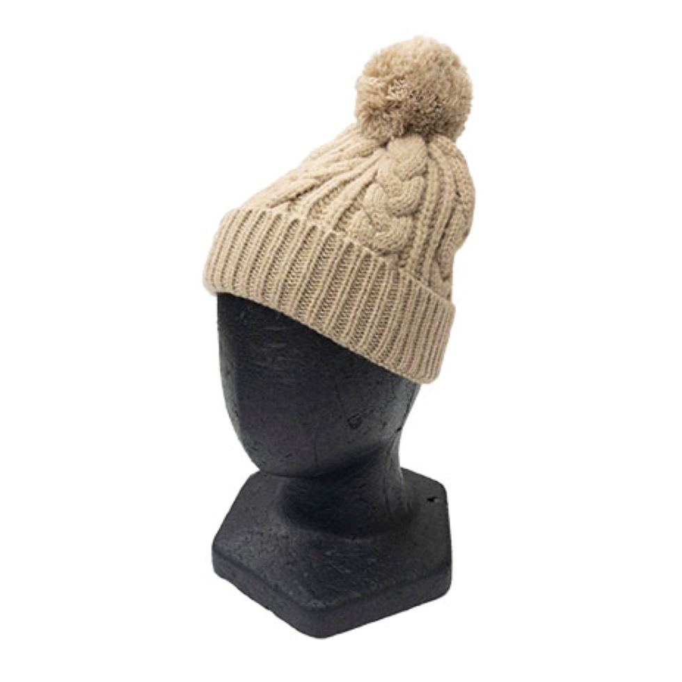 ポンポン付ケーブルニット帽【BEIGE】