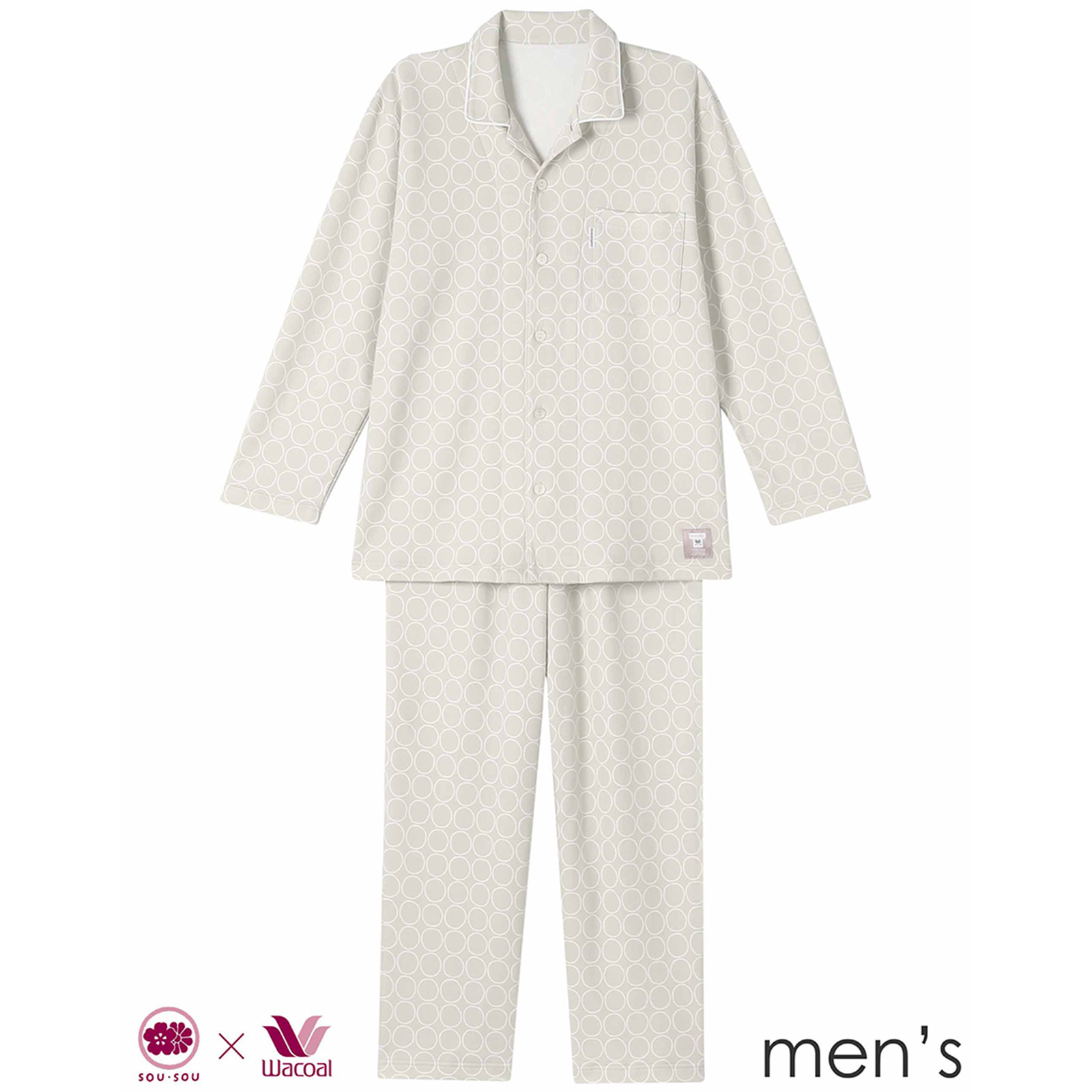 「新しい日本文化の創造」をコンセプトに、現代のライフスタイルに寄り添うものづくりを展開する京都のブランド「SOU・SOU®」の和モダンなテキスタイルデザインを、パジャマのイメージに合うようにやわらかな色合いで表現しました。 グリーンは「糺(ただす)の森」の柄、ベージュは「わならべ」の柄となっています。