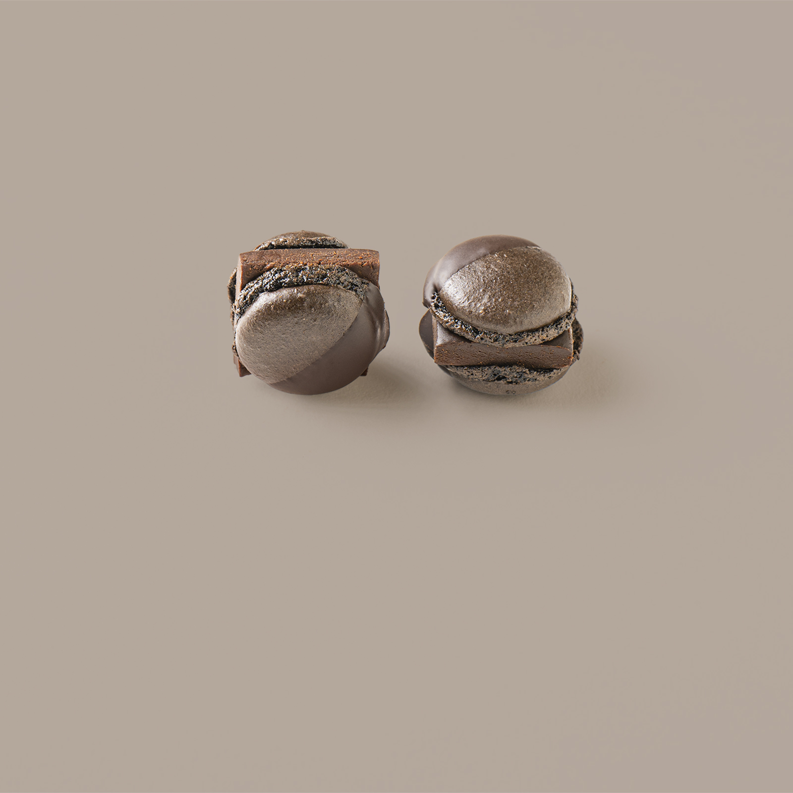 構想から発売まで2年、1粒を作るのにのべ1週間かかる生チョコマカロン。 3ヵ国のBean to bar chocolate をバランスよく配合することで生まれる滑らかな口どけ、豊かなアロマの生チョコ。 挽きたてのアーモンドで作るマカロン生地は香り高く、至極の生チョコマカロンです。