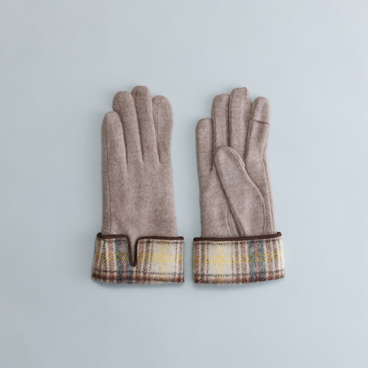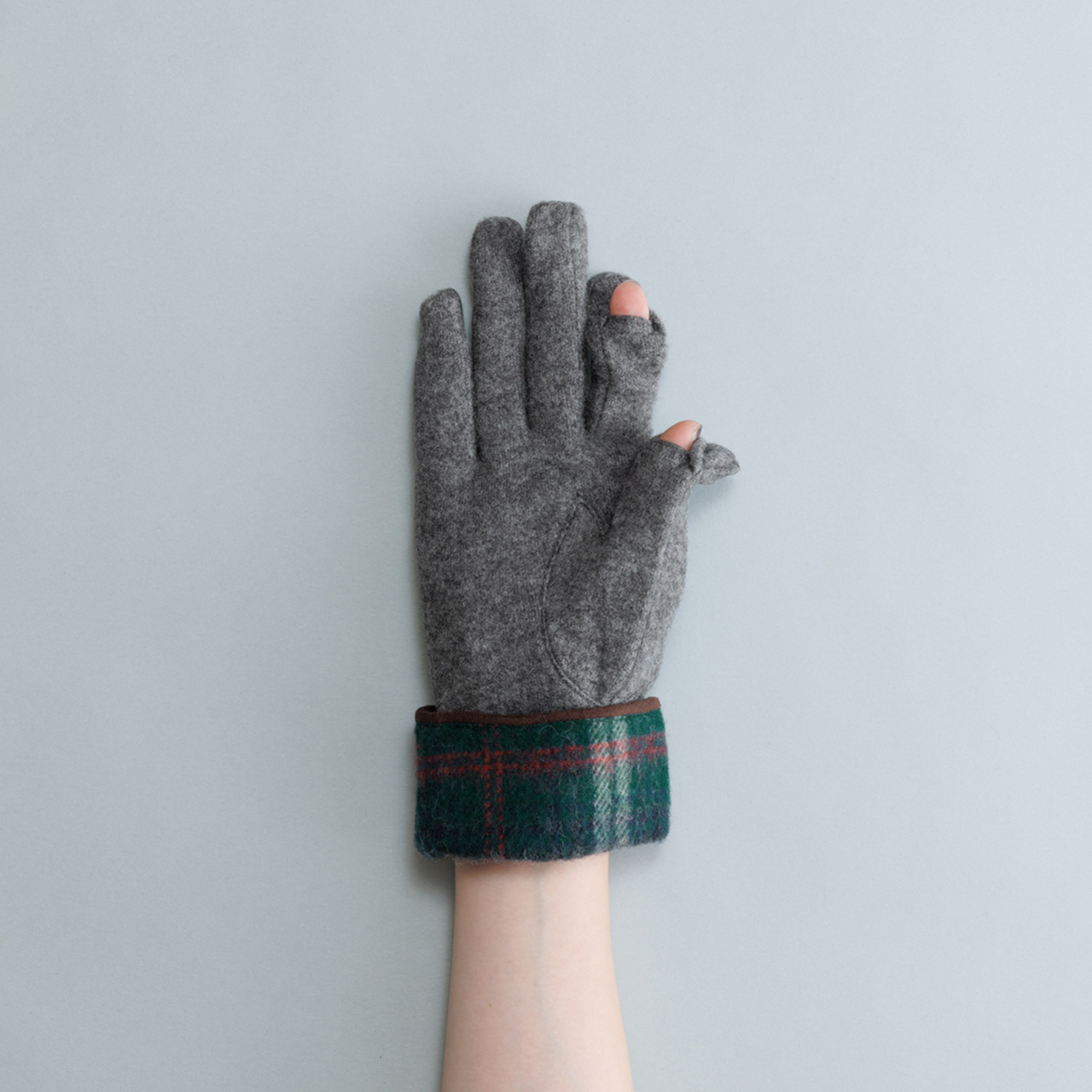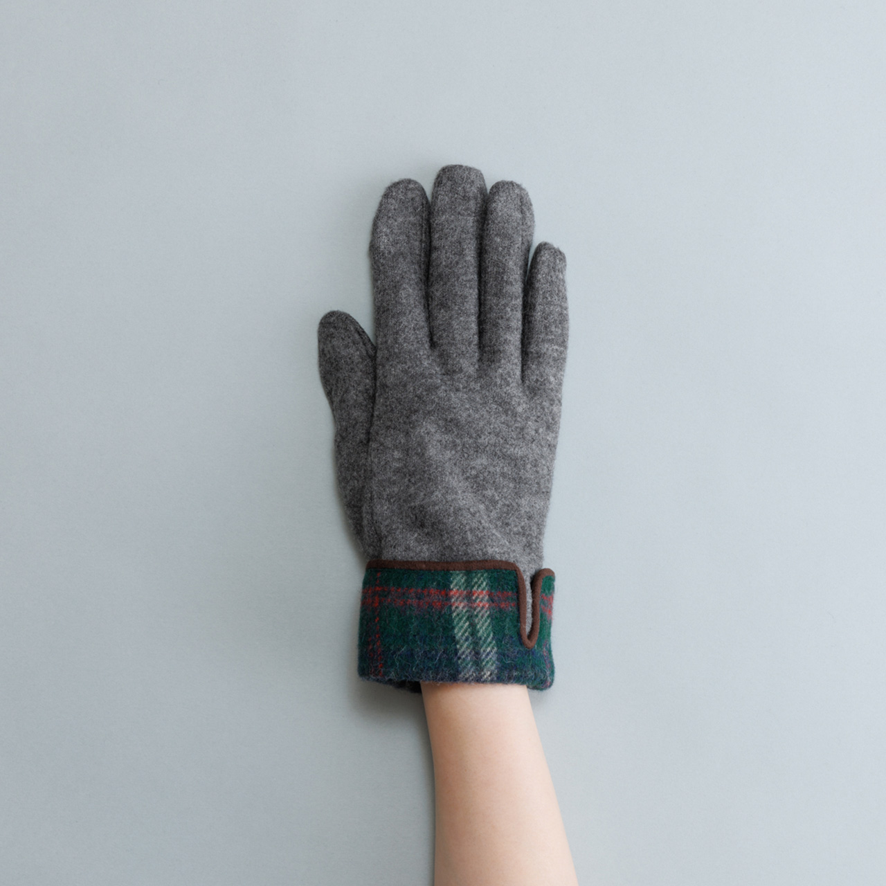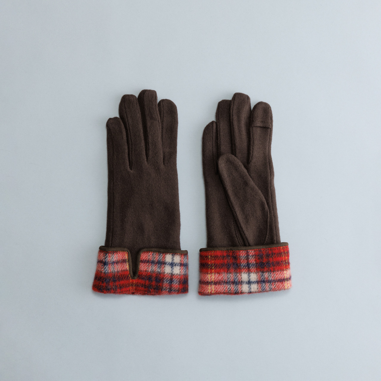 タータンチェックをカフス風にあしらった大人の雰囲気漂うグローブ。裏地は暖かく滑らかなマイクロボアを使用し、指先スリットでスマホ操作もスムーズです。