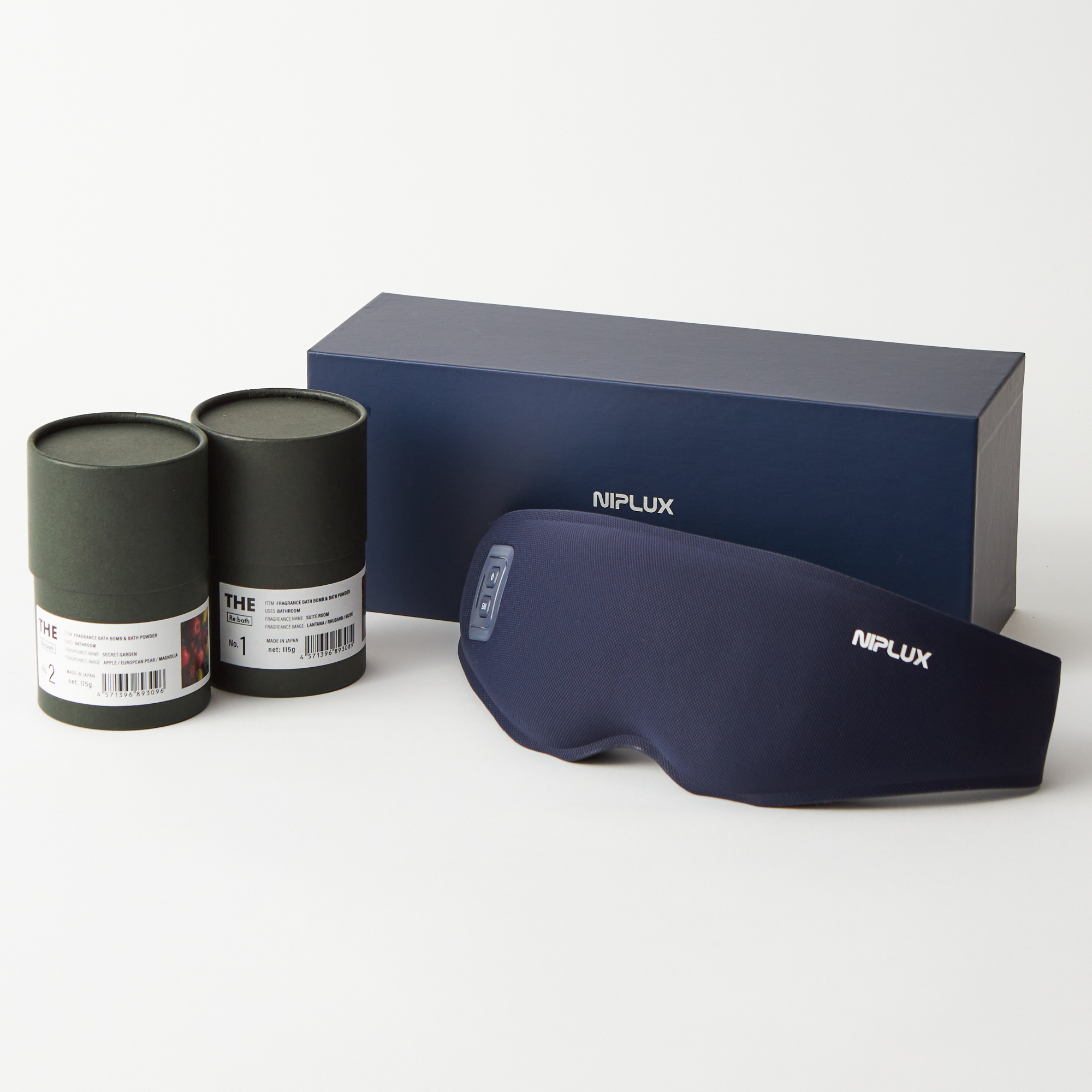 大口注文・法人のお問い合わせはこちら独自のEMS波系を採用することでデリケートな目元へのEMSケアを可能にした「NIPLUX(ニップラックス)」のアイマスクと「THE STORE(ザ ストア)」の人気フレグランスバスボムのセットです。 毎日頑張る大切なあの人へ、癒しのギフトセットを贈りませんか?