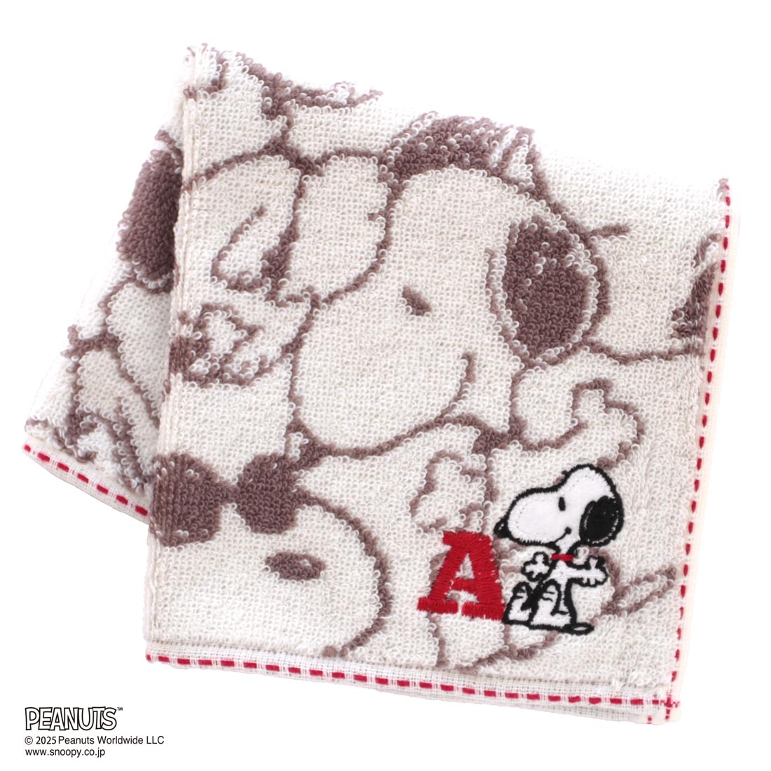 愛らしいスヌーピーが、イニシャルと共に刺繍されたタオルハンカチ。 イニシャルは「A・H・K・M・N・R・S・T・Y」の9文字より、お選びいただけます。 ふんわりと柔らかな綿100%のパイルジャカード生地は、吸水性にも優れています。