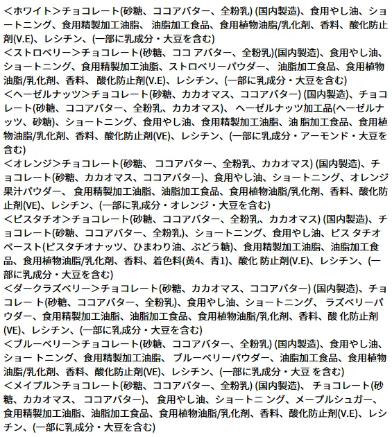 | 備考 | ※ご選択いただくチョコレートによって価格が異なります。 |