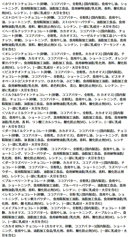 アーティスト・木野聡子さんとのコラボパッケージ。美しい黒猫がクリスマスのコスプレをした限定の写真作品のパッケージです。 クリスマスに限らずウィンターギフトとしても活用できるデザインです。 ■フレーバー ホワイト、ストロベリー、ヘーゼルナッツ、オレンジ、ピスタチオ、ミルク&ホワイト、ソルティミルク、ダーク&ミルク、マンゴー、ダークラズベリー、ブルーベリー、レモン、メイプル、カカオ80%各1個ずつ