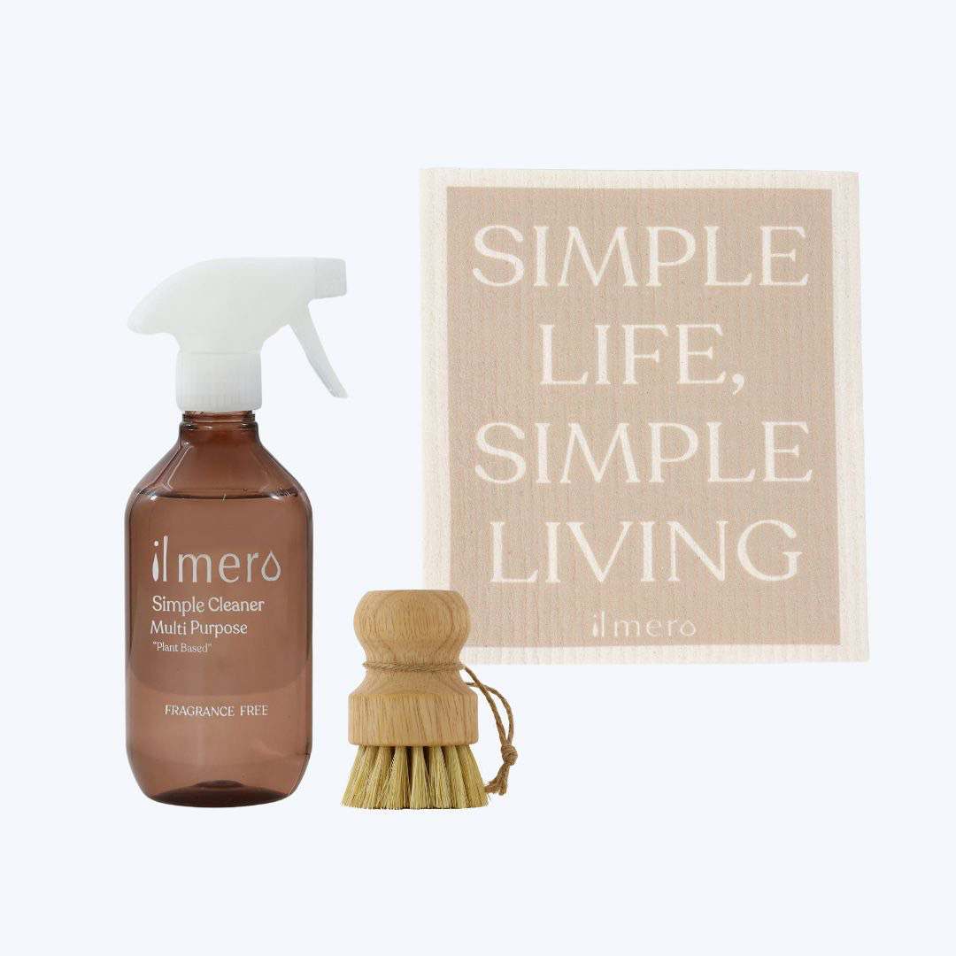 大口注文・法人のお問い合わせはこちら<セット内容> ・多目的クリーナー(400ml) ・オリジナルクロス ・キッチンブラシ 100%植物由来の洗浄成分でありながら、あらゆるシーンで期待を超える使い心地を実現した多目的クリーナーと、オリジナルクロス、キッチンブラシのセットです。 最小限のアイテムで日々の家事や作業をシンプルに。 使うたびに「これが欲しかった」と感じられる、安心で高品質なアイテムをil meroはお届けします。