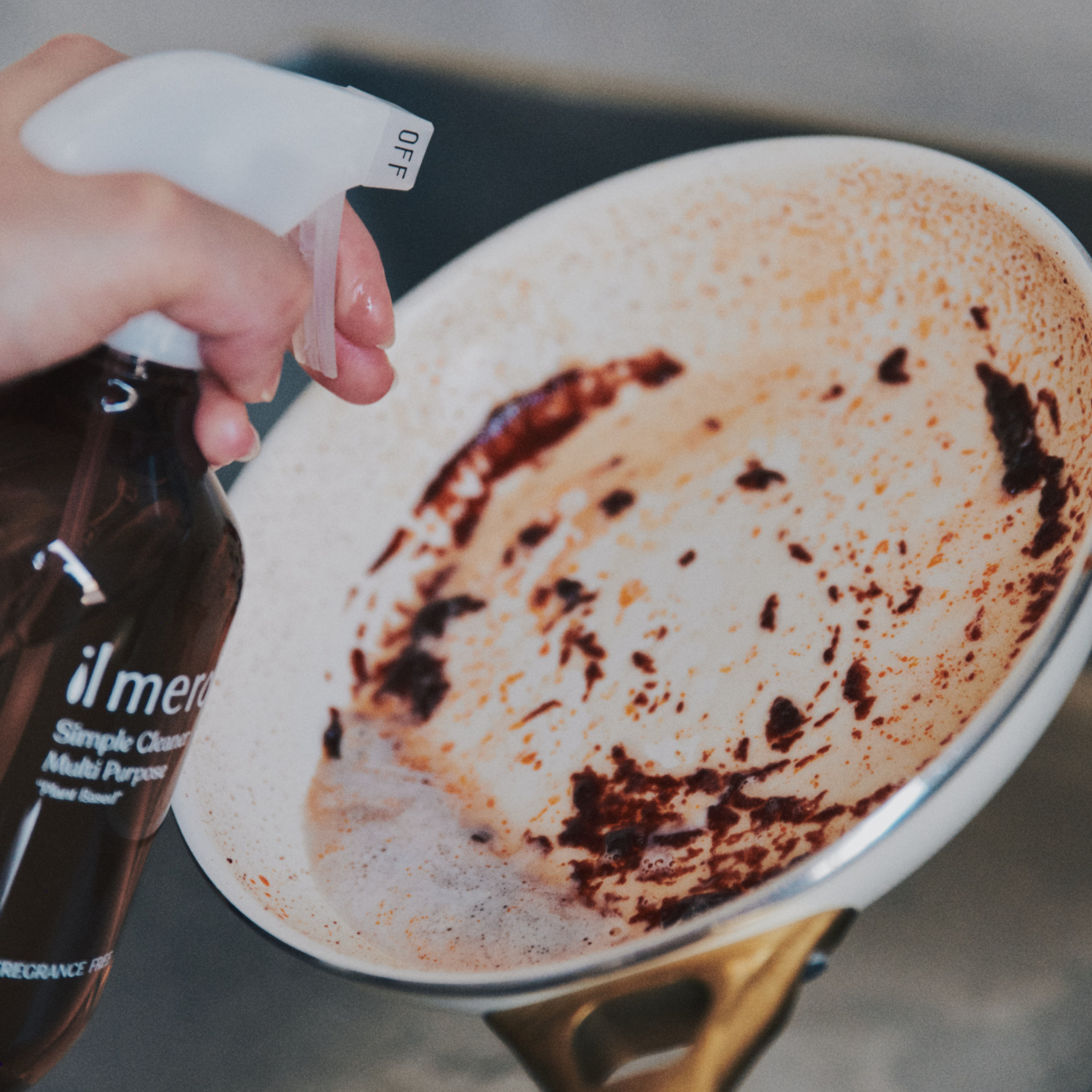フライパンやタッパーなどについた油汚れも、シュっとかけて少し時間を置いてから流すだけで、想像以上にキュっと仕上がります。