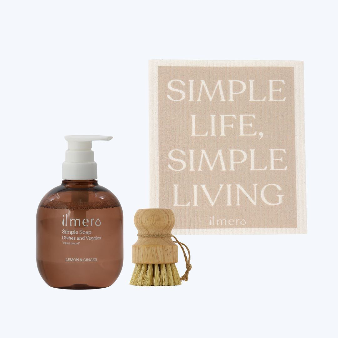 大口注文・法人のお問い合わせはこちら<セット内容> ・食器・野菜用洗剤(400ml) ・オリジナルクロス ・キッチンブラシ 100%植物由来の洗浄成分でありながら、期待を超える使い心地の食器・野菜用洗剤と、オリジナルクロス、キッチンブラシのセットです。 最小限のアイテムで日々の家事や作業をシンプルに。 使うたびに「これが欲しかった」と感じられる、安心で高品質なアイテムをil meroはお届けします。