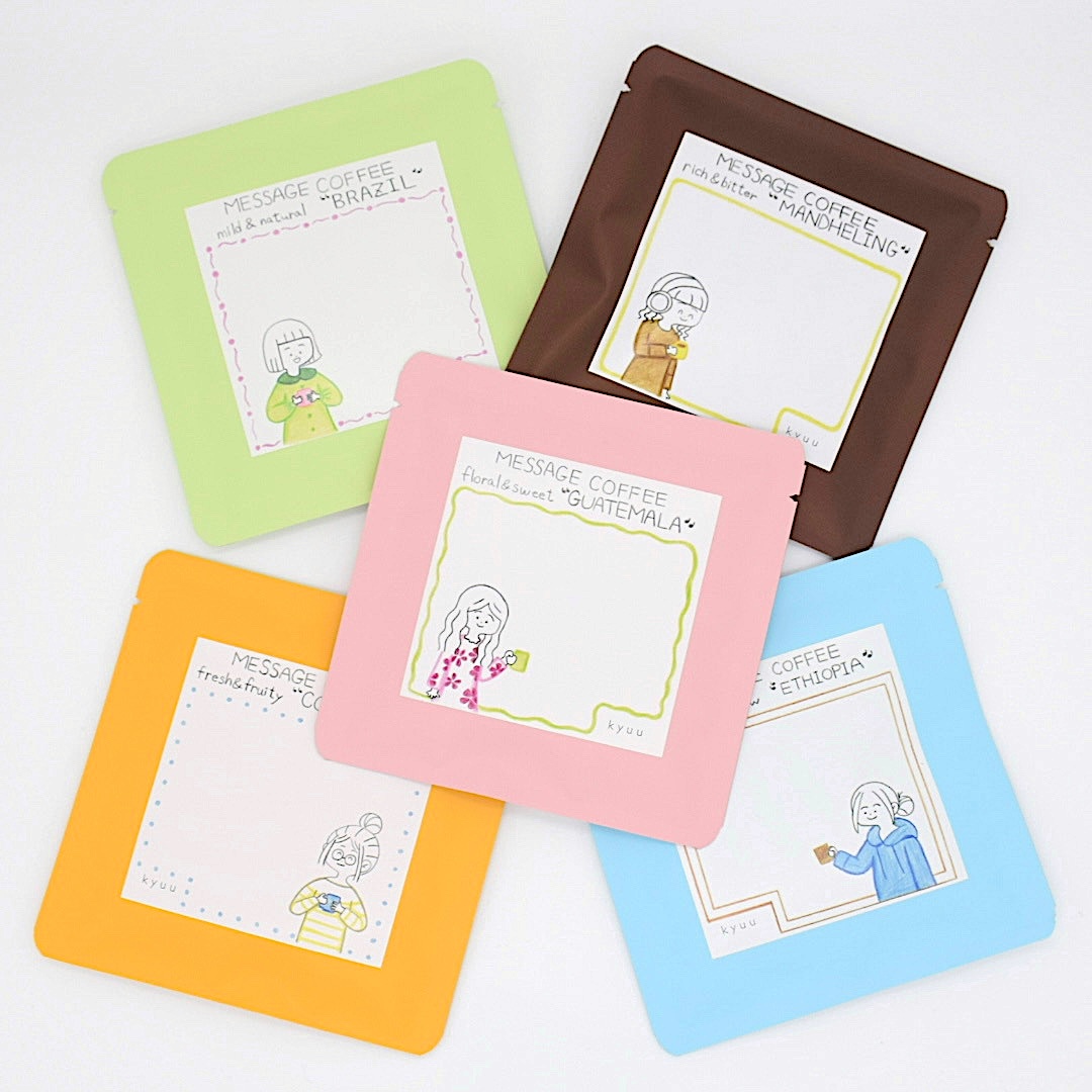 カラフルでクリアな5つの香りと味わいのメッセージコーヒー10個セット