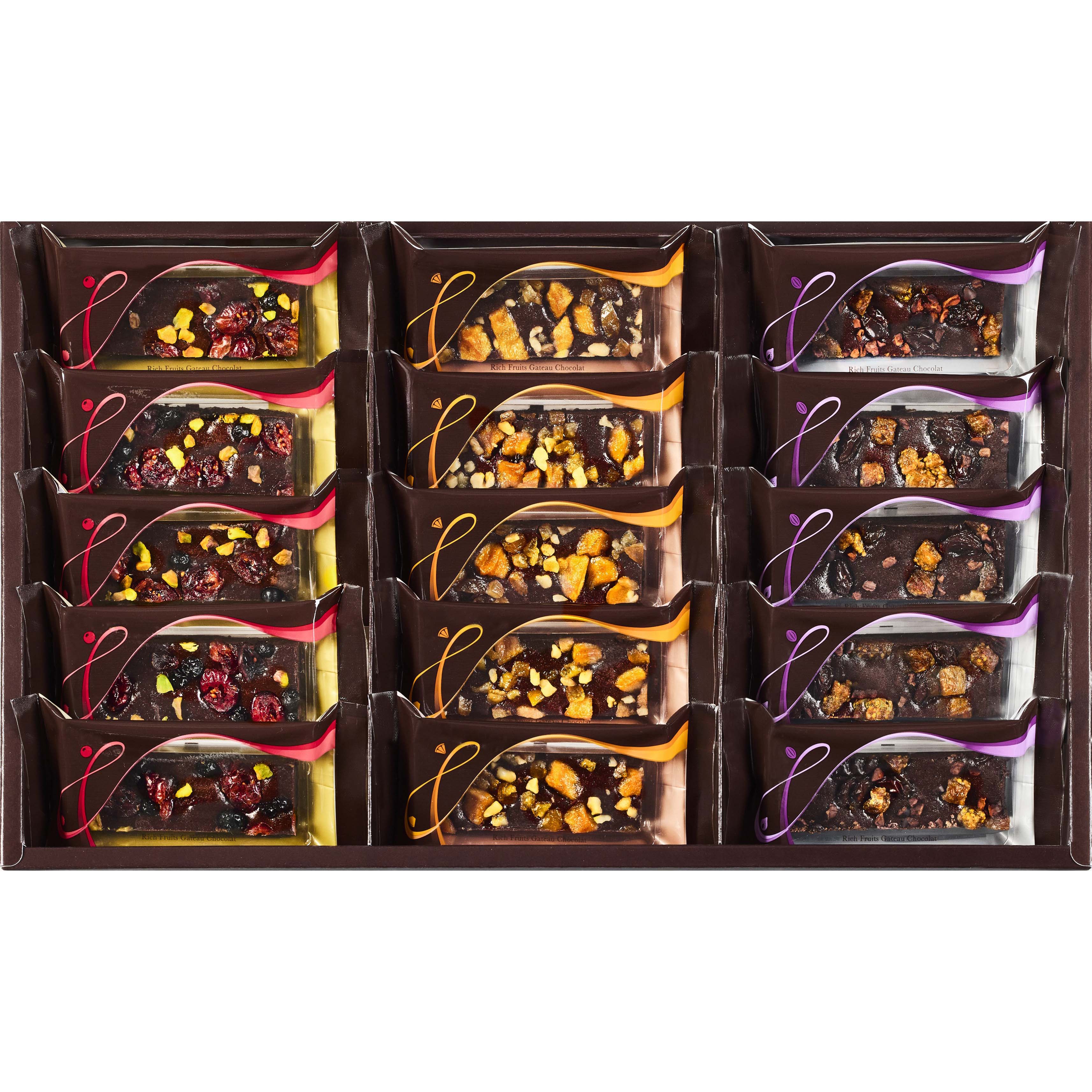 | 原材料 | <ベリー&ベリー>準チョコレート(国内製造)、液卵、マーガリン、キャラメルペースト、クリーム、クランベリー砂糖漬(クランベリー、砂糖、植物油脂)、ブルーベリー加工品、砂糖、転化糖、ラズベリー加工品、小麦粉、ピスタチオ、食塩/酸味料、着色料(アントシアニン、カロテノイド)、香料、乳化剤、酵素、(一部に小麦・卵・乳成分・大豆を含む)<オレンジ&アップル>準チョコレート(国内製造)、液卵、マーガリン、りんご砂糖漬(りんご、砂糖、植物油脂)、キャラメルペースト、クリーム、オレンジピール加工品、転化糖、はちみつ、砂糖、小麦粉、オレンジペースト、くるみ、オレンジ果汁加工品、食塩/酸味料、乳化剤、香料、酸化防止剤(V.C)、酵素、着色料(フラボノイド、レモン果汁)、(一部にくるみ・小麦・卵・乳成分・オレンジ・大豆・りんごを含む)<レーズン&イチジク>準チョコレート(国内製造)、液卵、マーガリン、キャラメルペースト、クリーム、レーズン、乾燥いちじく(白いちじく、米粉)、砂糖、転化糖、小麦粉、カカオニブ、洋酒、食塩/乳化剤、酵素、香料、(一部に小麦・卵・乳成分・大豆を含む) |